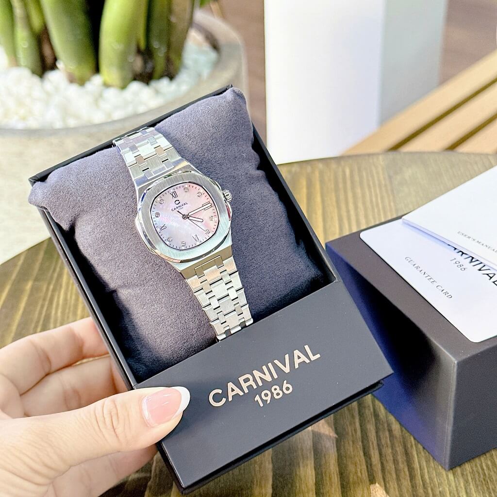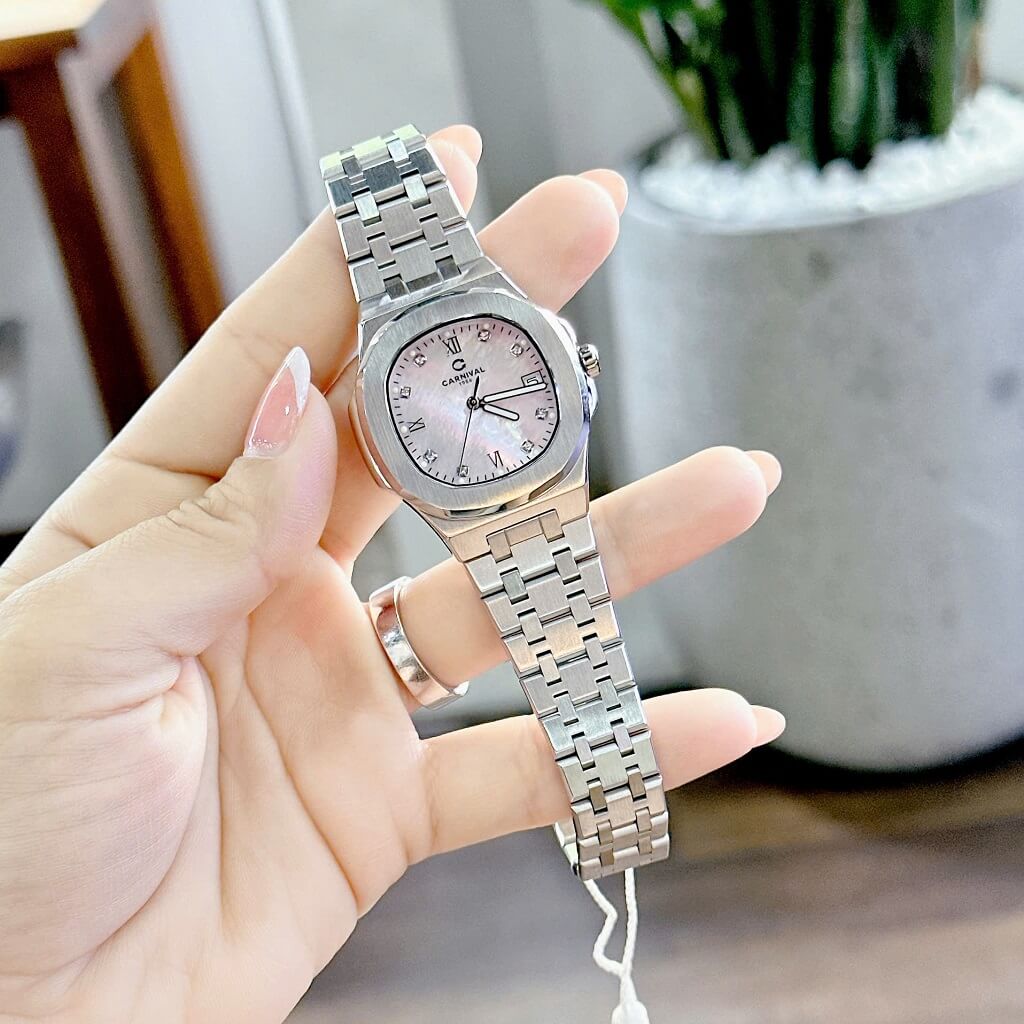 Dù là đi làm, đi chơi hay dự tiệc, Carnival 8160L mặt xà cừ dây bạc luôn giúp bạn trở nên nổi bật một cách tinh tế. Kiểu dáng hiện đại, không lỗi mốt và dễ phối đồ là lý do mẫu đồng hồ này luôn được săn đón.