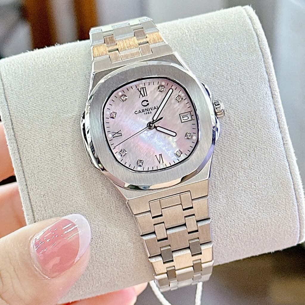 Đồng Hồ Nữ Carnival 8160L Mặt Xà Cừ Dây Kim Loại Silver Size 34mm – Tinh khôi & Sang trọng