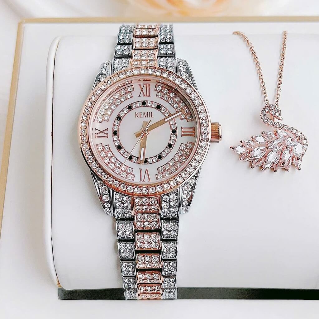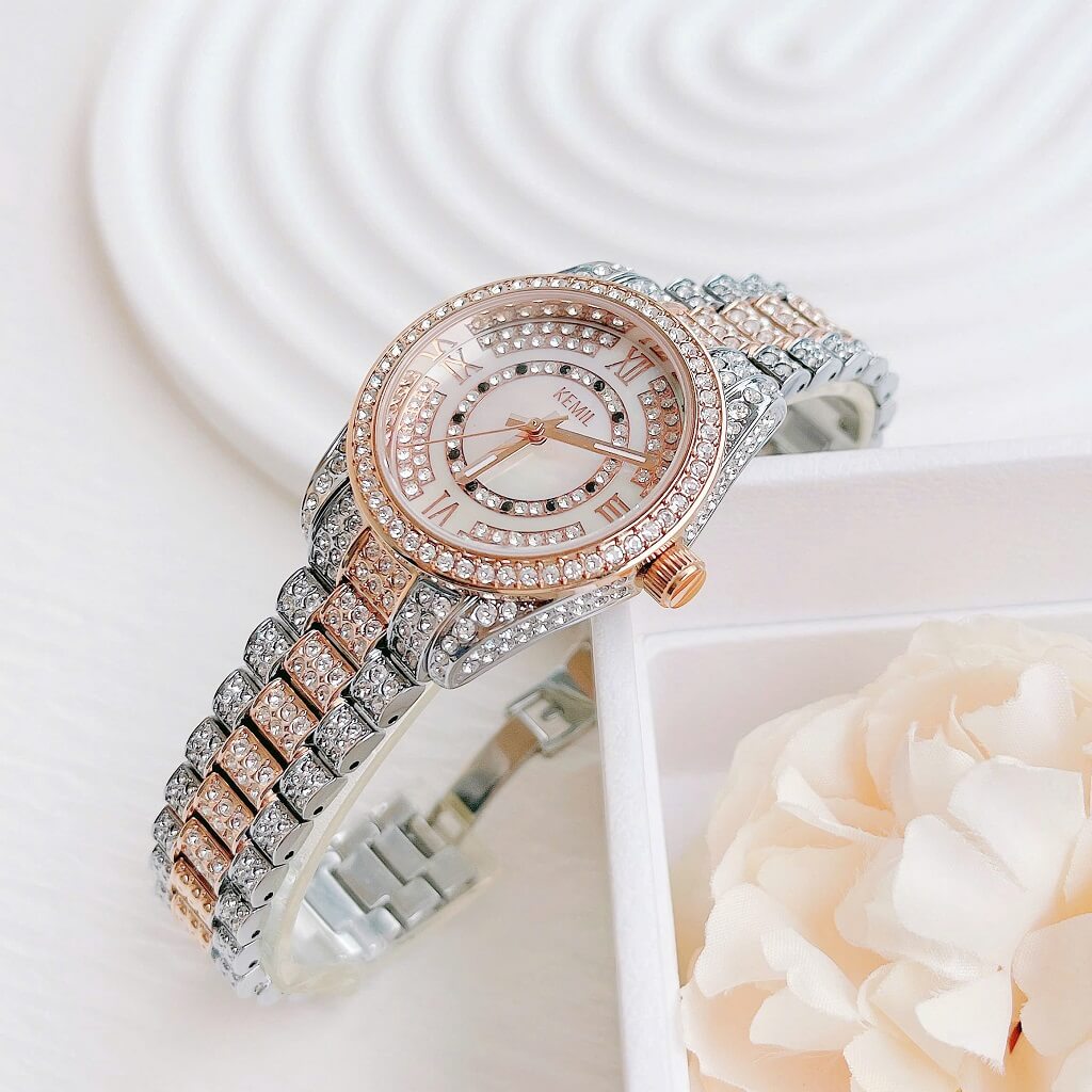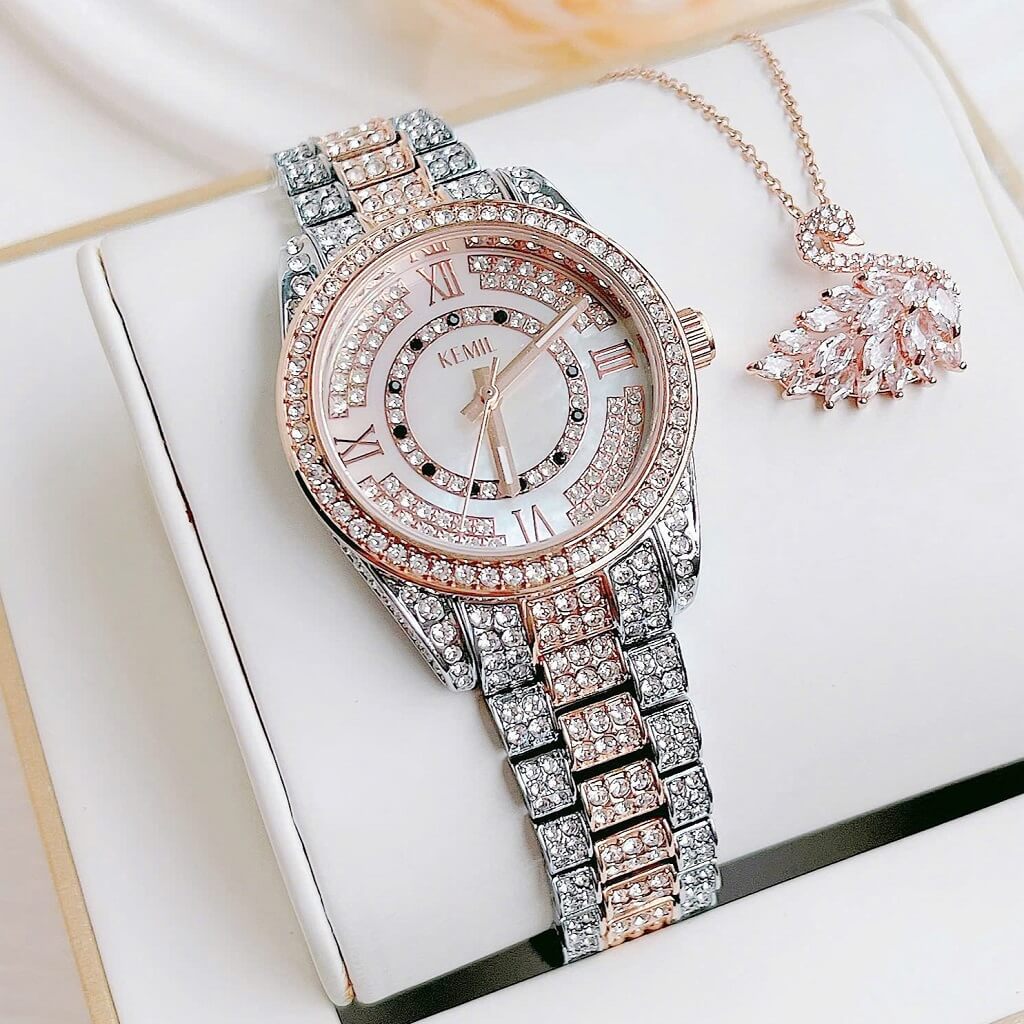 Viền mặt đính đá pha lê lấp lánh, tạo hiệu ứng bắt sáng đẹp mắt, giúp tổng thể thêm phần nổi bật.