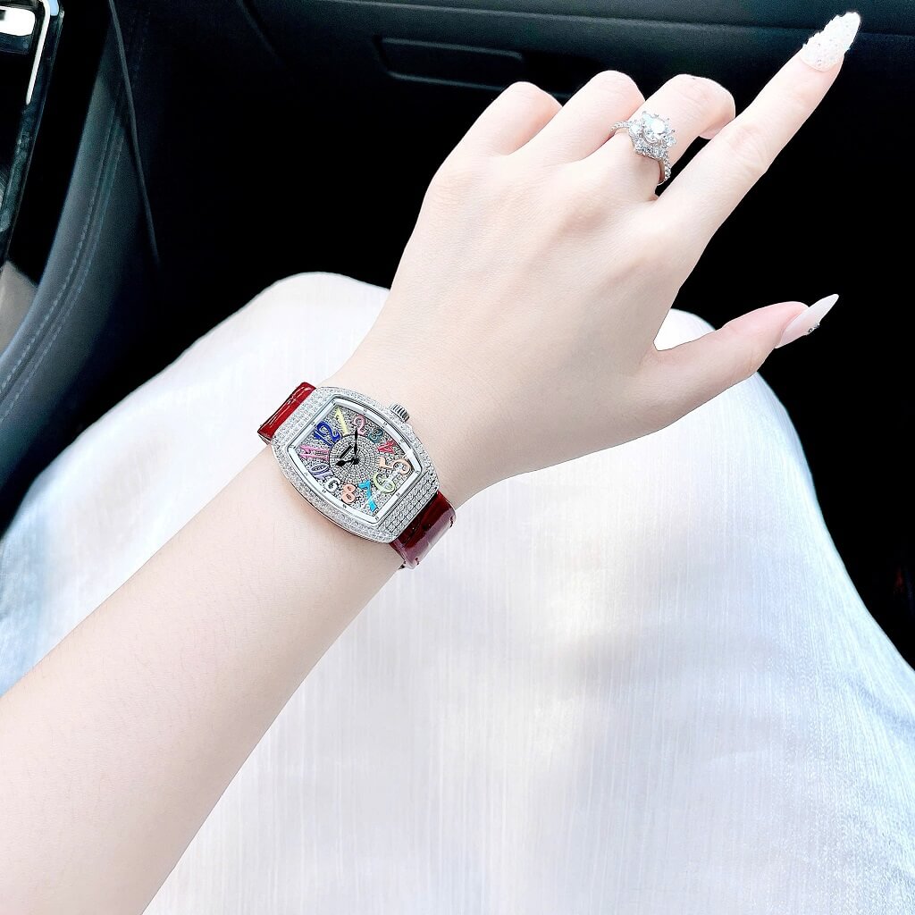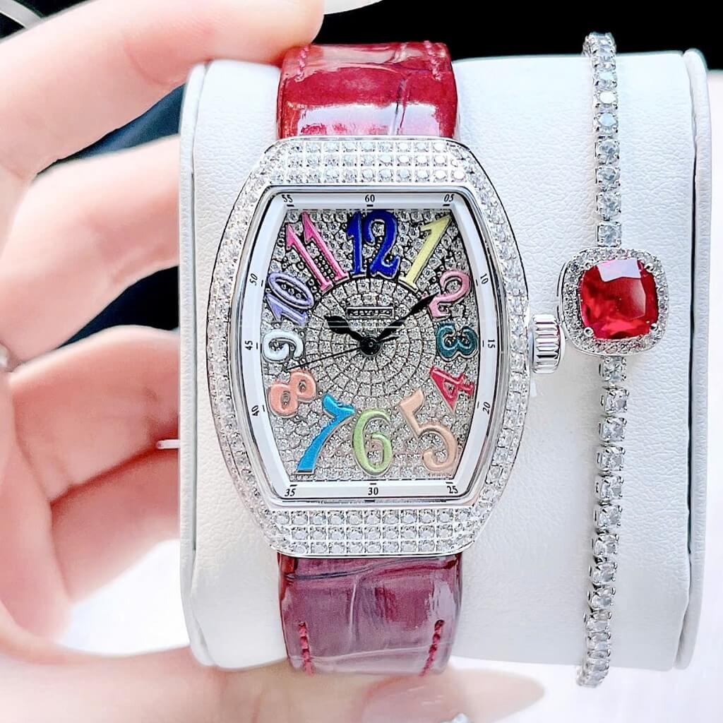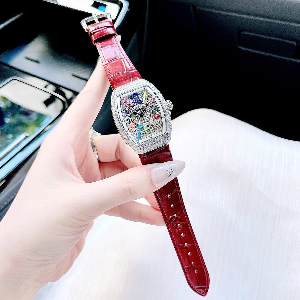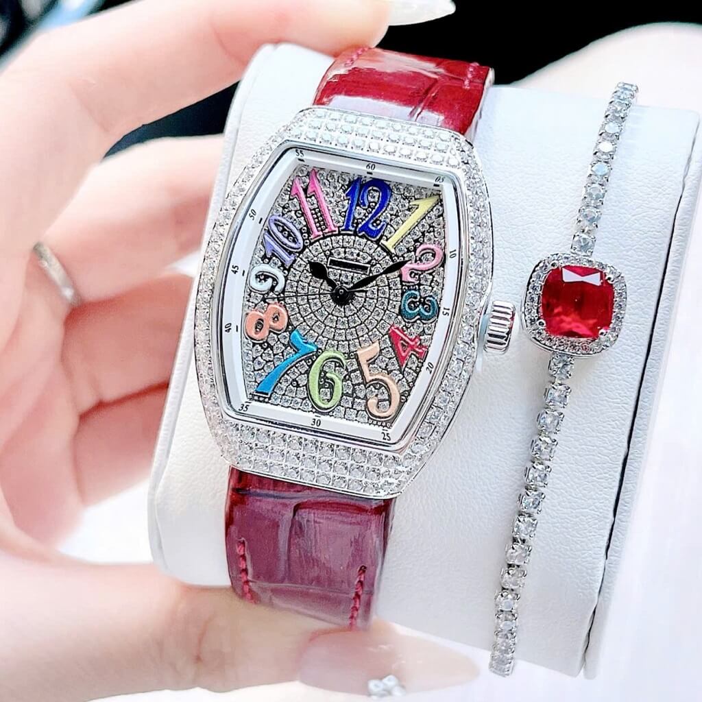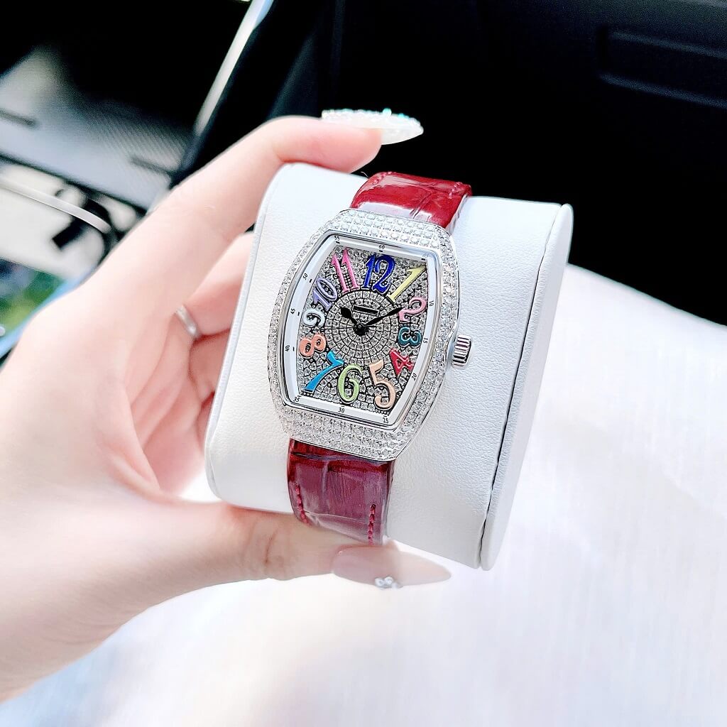 Màu đỏ rượu vang của dây da thể hiện sự quyến rũ, tự tin và cá tính mạnh mẽ. Khi kết hợp với mặt ovan đính đá và vỏ bạc, tổng thể chiếc đồng hồ trở thành một món phụ kiện sang trọng phù hợp cho: