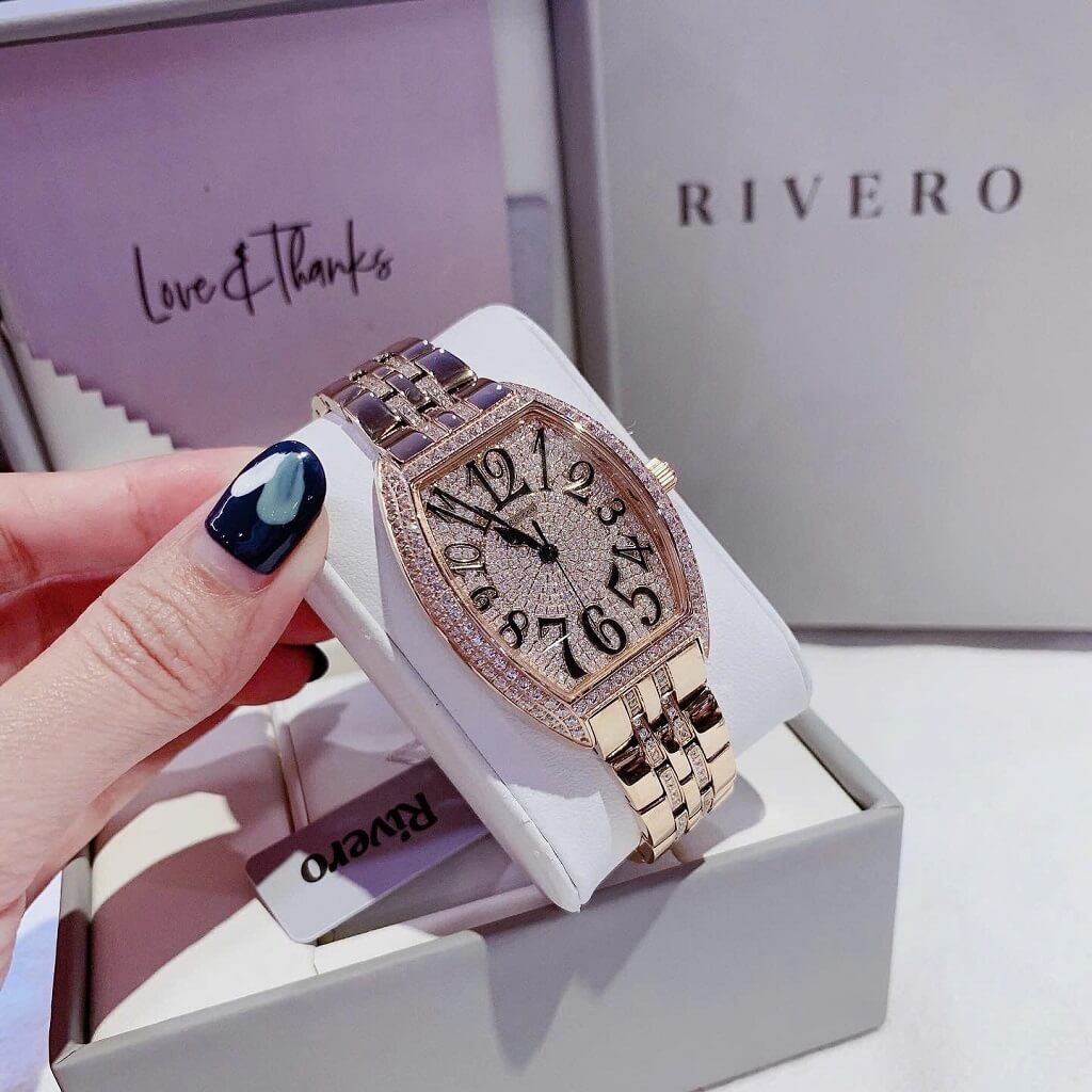 Đồng Hồ Nữ Rivero R9306 – Tỏa Sáng Với Thiết Kế Vàng Hồng Đính Đá Sang Trọng