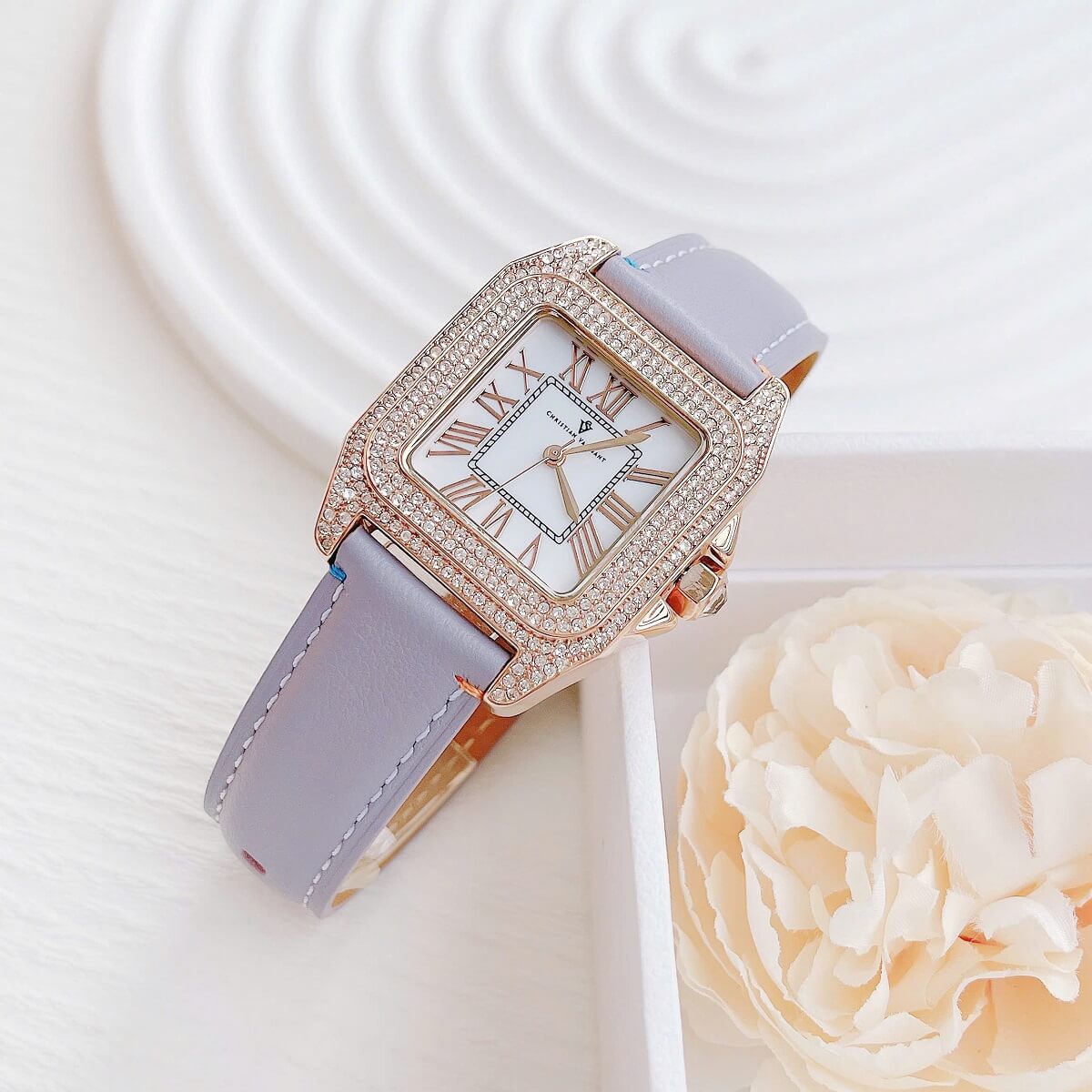 Đồng Hồ Nữ Christian Van Sant Dây Da Mặt Vuông Vàng Hồng Đính Đá Size 38mm chính là sự lựa chọn lý tưởng – dành riêng cho quý cô yêu thích sự thanh lịch, quyến rũ và khác biệt.