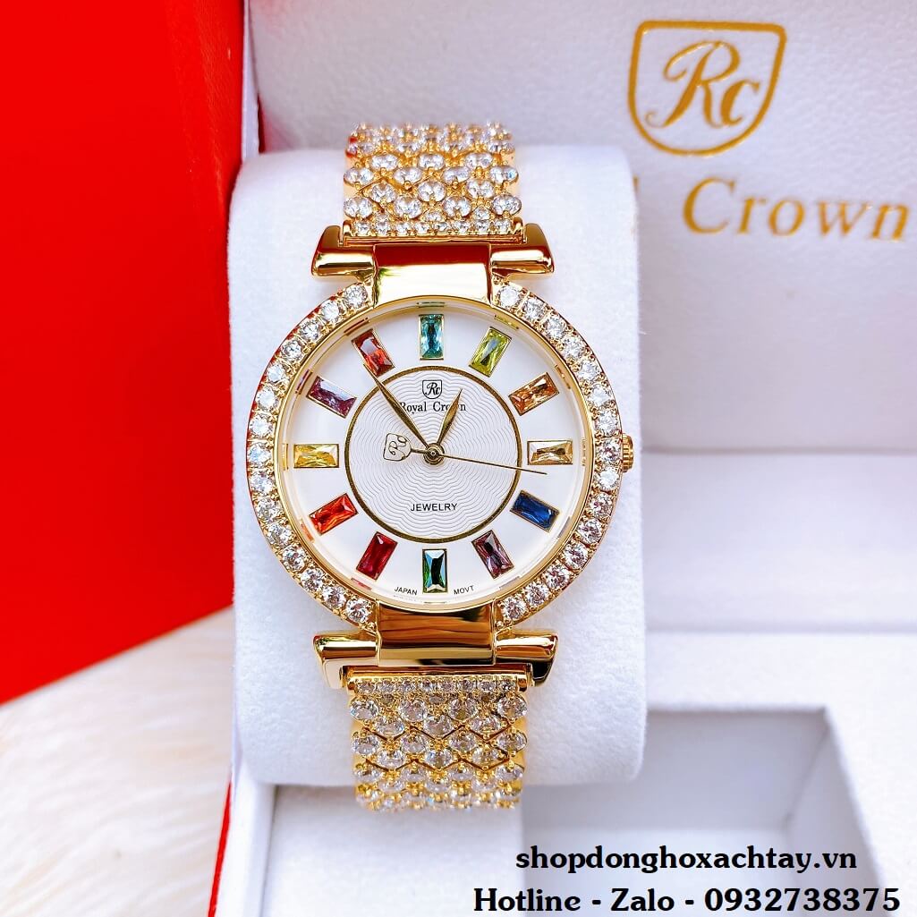 Đồng Hồ Nữ Royal Crown 4604 Chính Hãng Đá Vàng 36mm