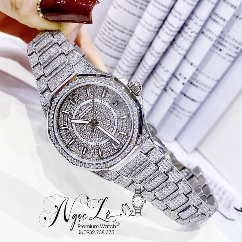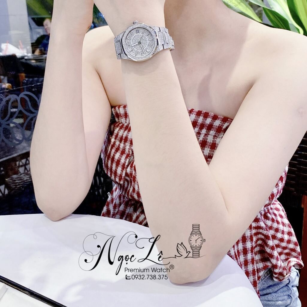 Đồng hồ nữ được đính đá full mặt và dây, hoạt động bằng Pin, kiểu dáng Piaget
