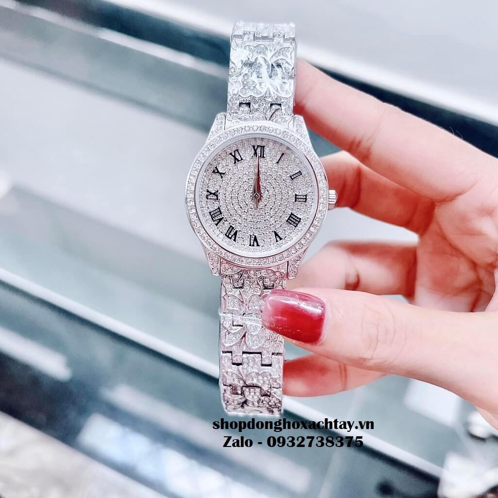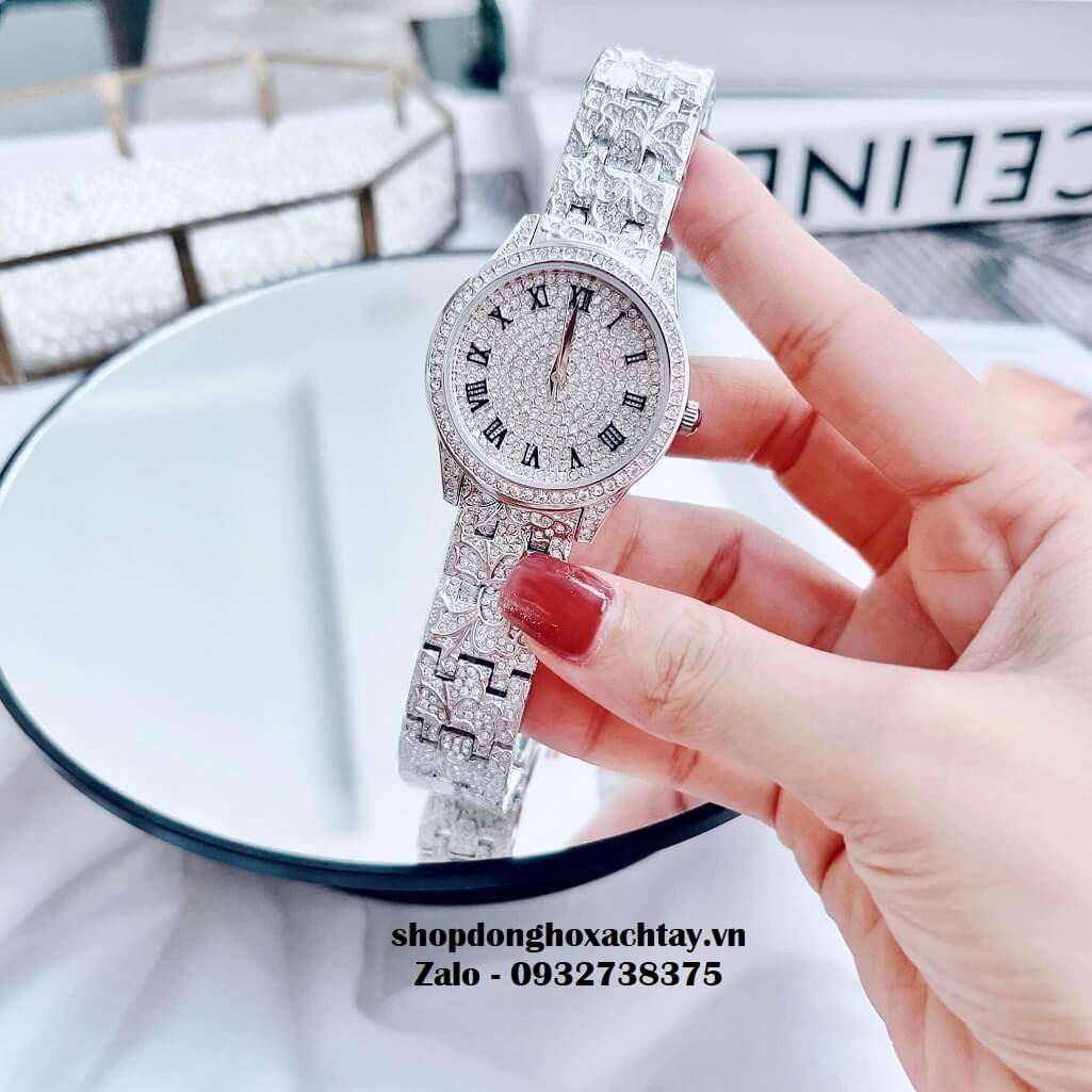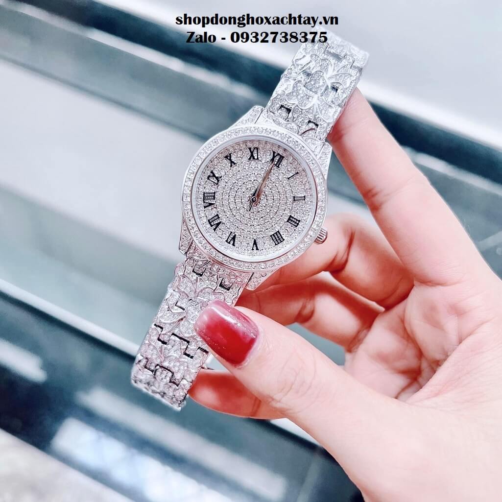 Đồng hồ Davena chính hãng nữ đính đá silver, mặt và dây được đính full đá swarovski sang trọng
