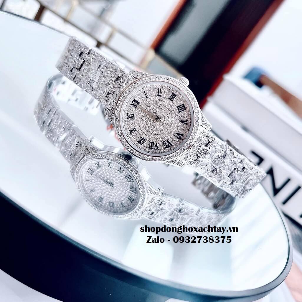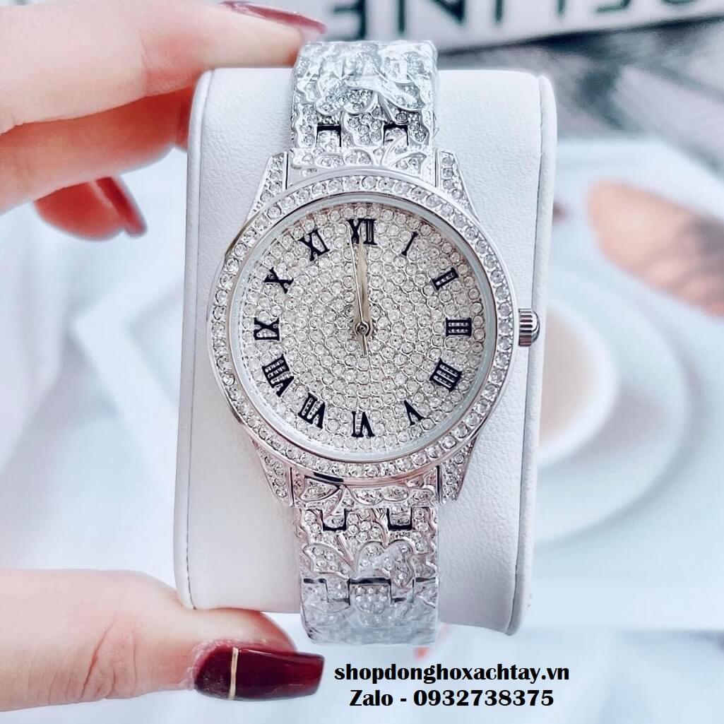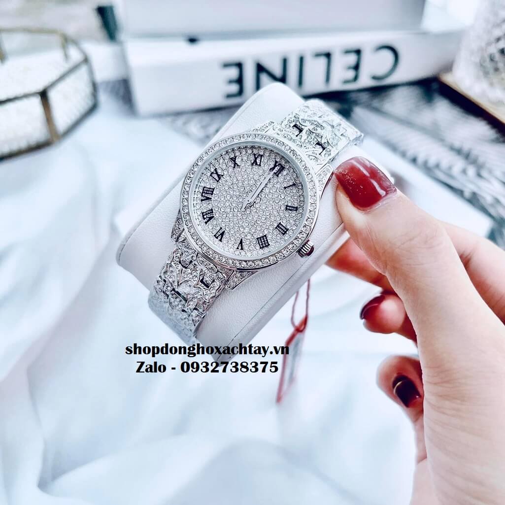 Đồng hồ Davena chính hãng nữ đính đá silver, mặt và dây được đính full đá swarovski sang trọng