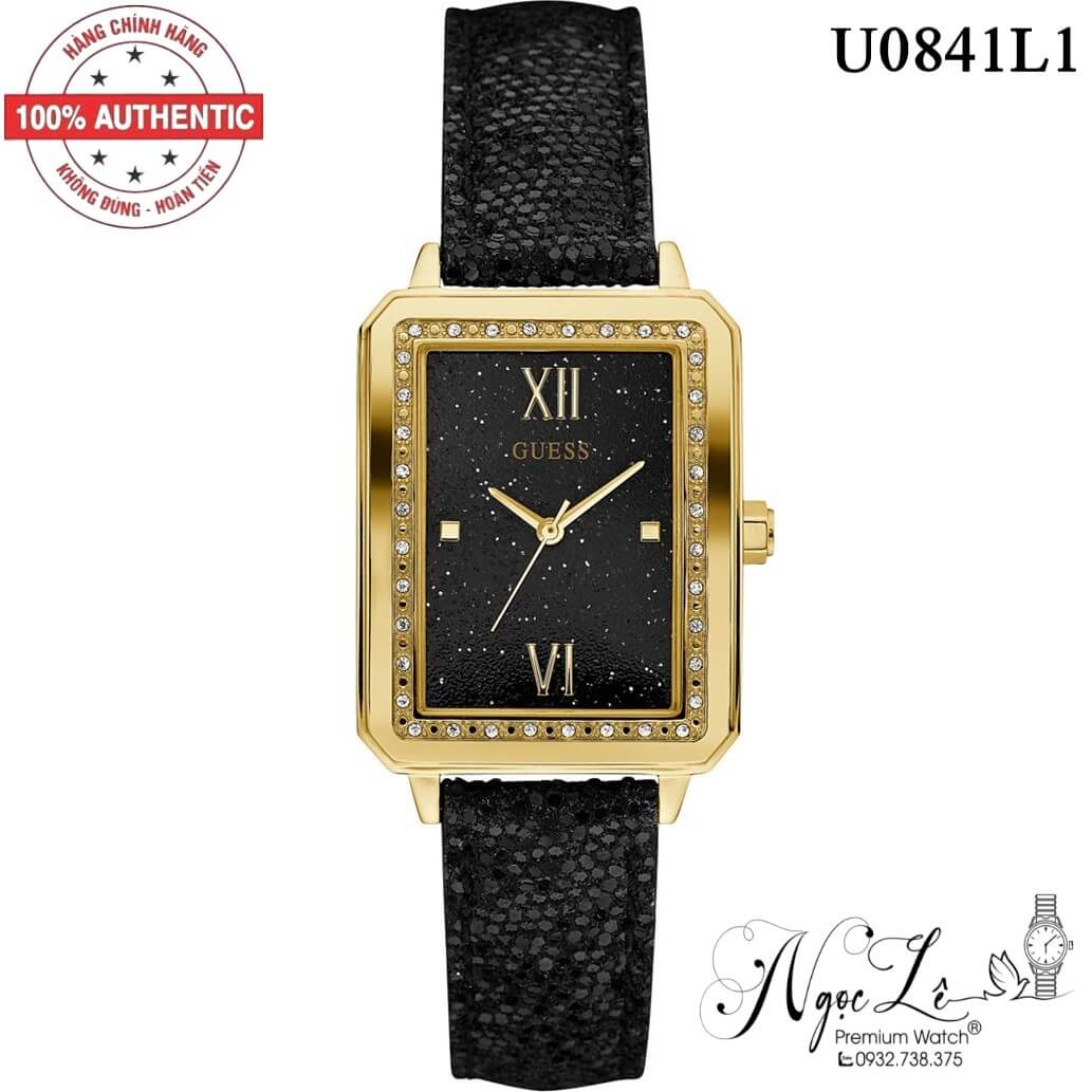 Hình ảnh thực tế Đồng Hồ Guess Chipu Dây Da Đen Mặt Vuông Nhũ U0841L1 Chính Hãng