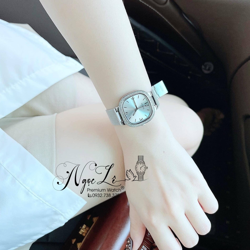 GW0354L1 viền mặt được đính đá, dây lưới ôm tay nữ tính, mặt đồng hồ cùng tone với dây