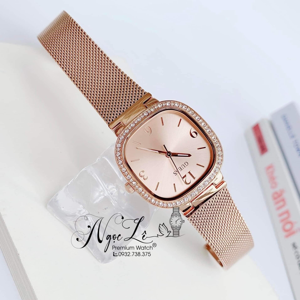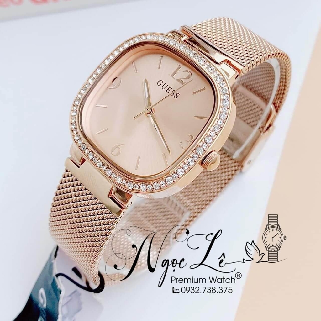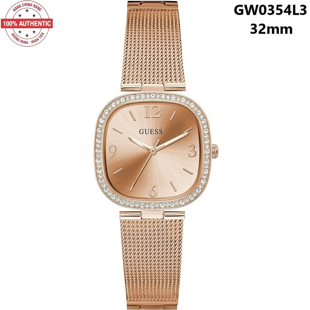 Đồng Hồ Guess GW0354L3 Nữ Dây Mesh Vàng Hồng Size 32mm Chính Hãng