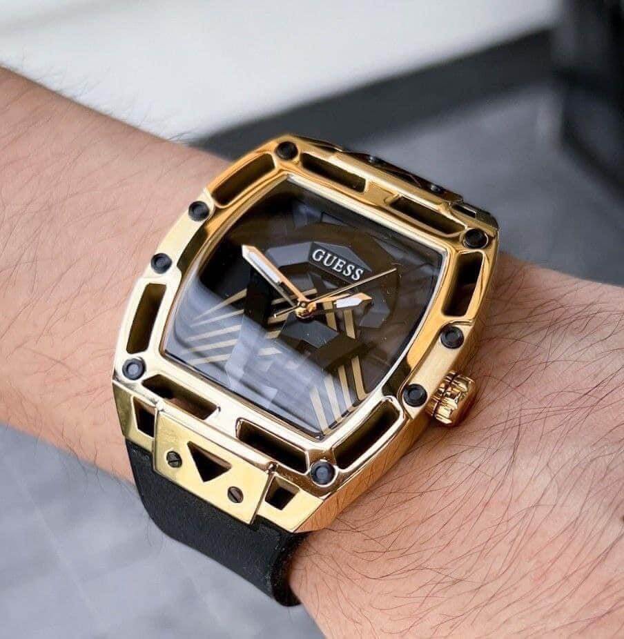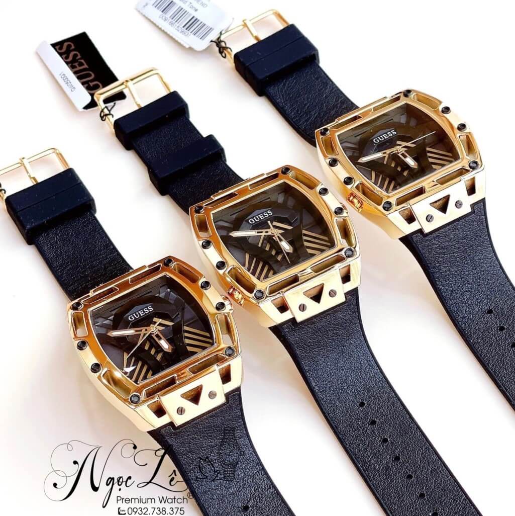 Guess Square Quartz Black Dial Silicone Black Men’s Watch GW0500G1 style cá tính và sang trọng