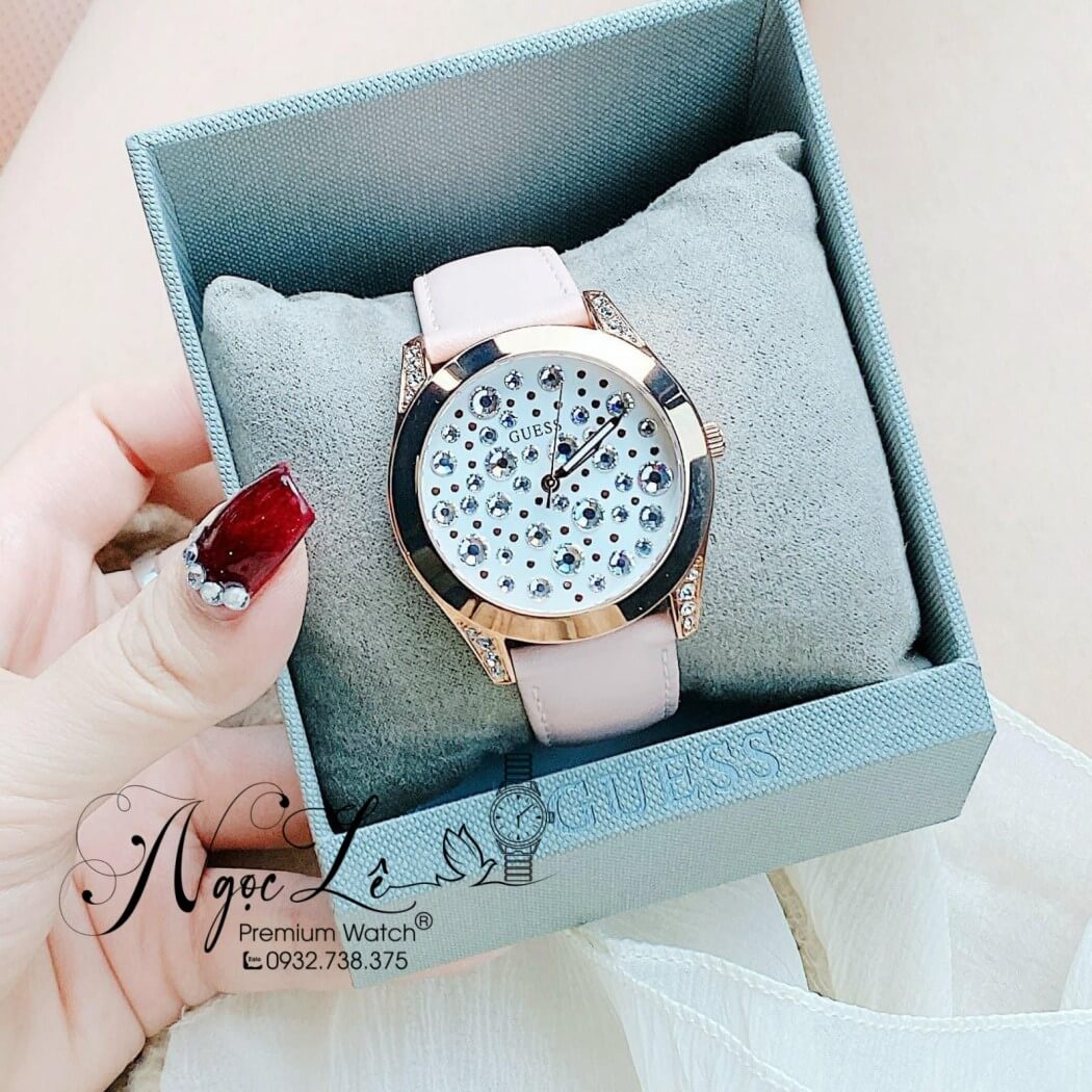 Mẫu đồng hồ Guess dây da màu hồng hot nhất dành cho các nàng đây rồi ạ