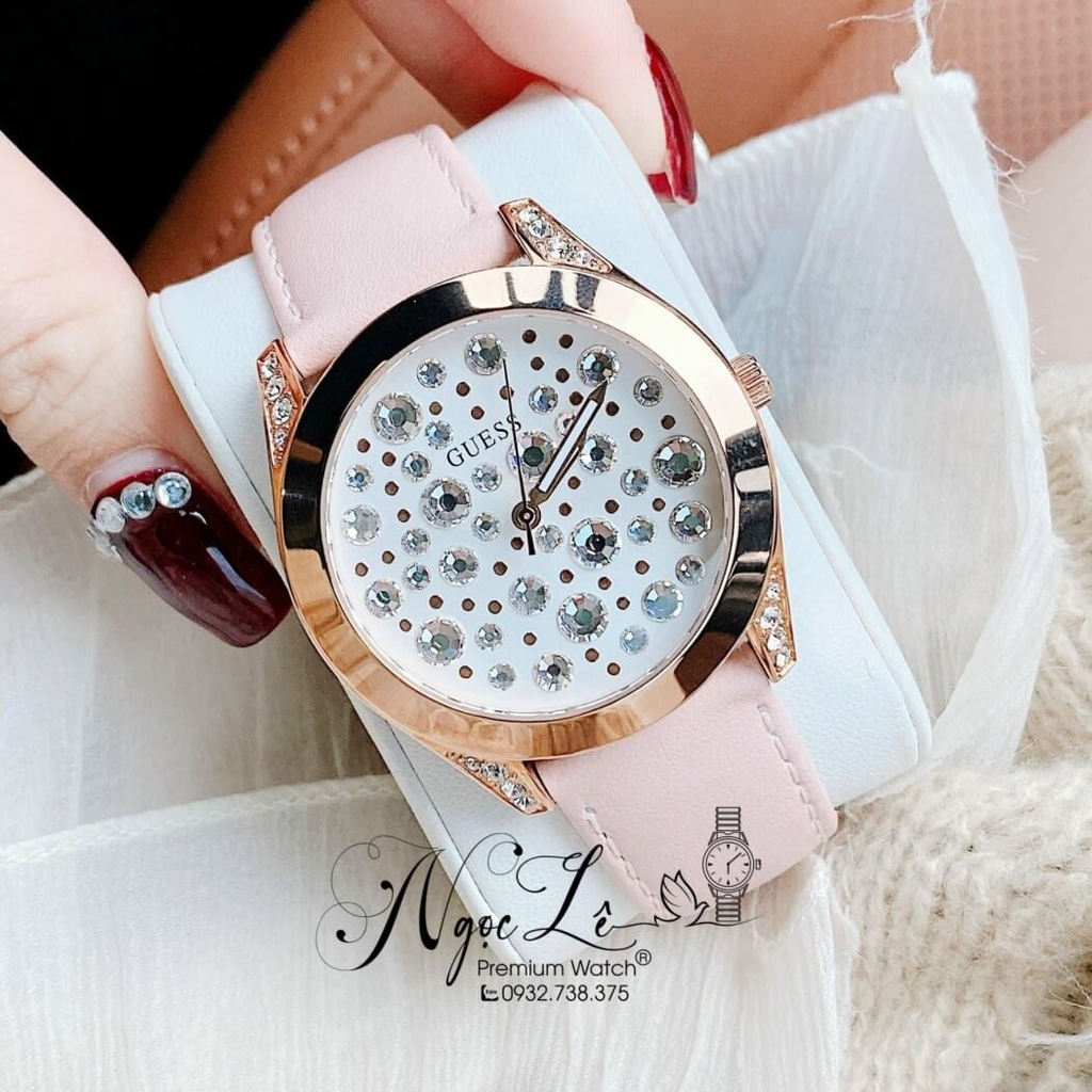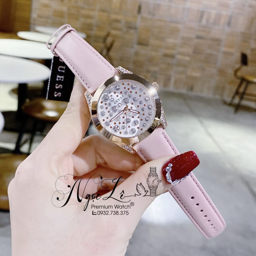 - Đồng Hồ Guess W1065L1 Nữ Dây Da Hồng Vỏ Rose Size 39mm Chính Hãng