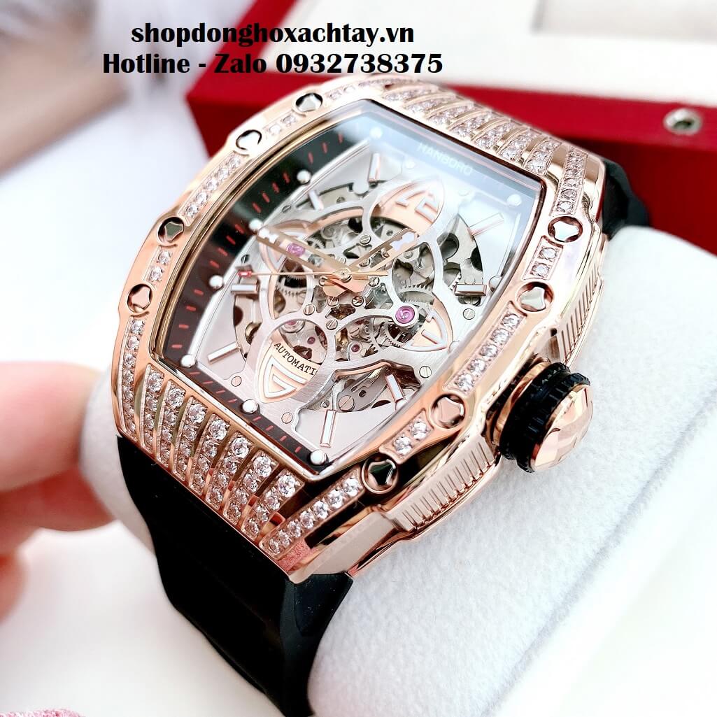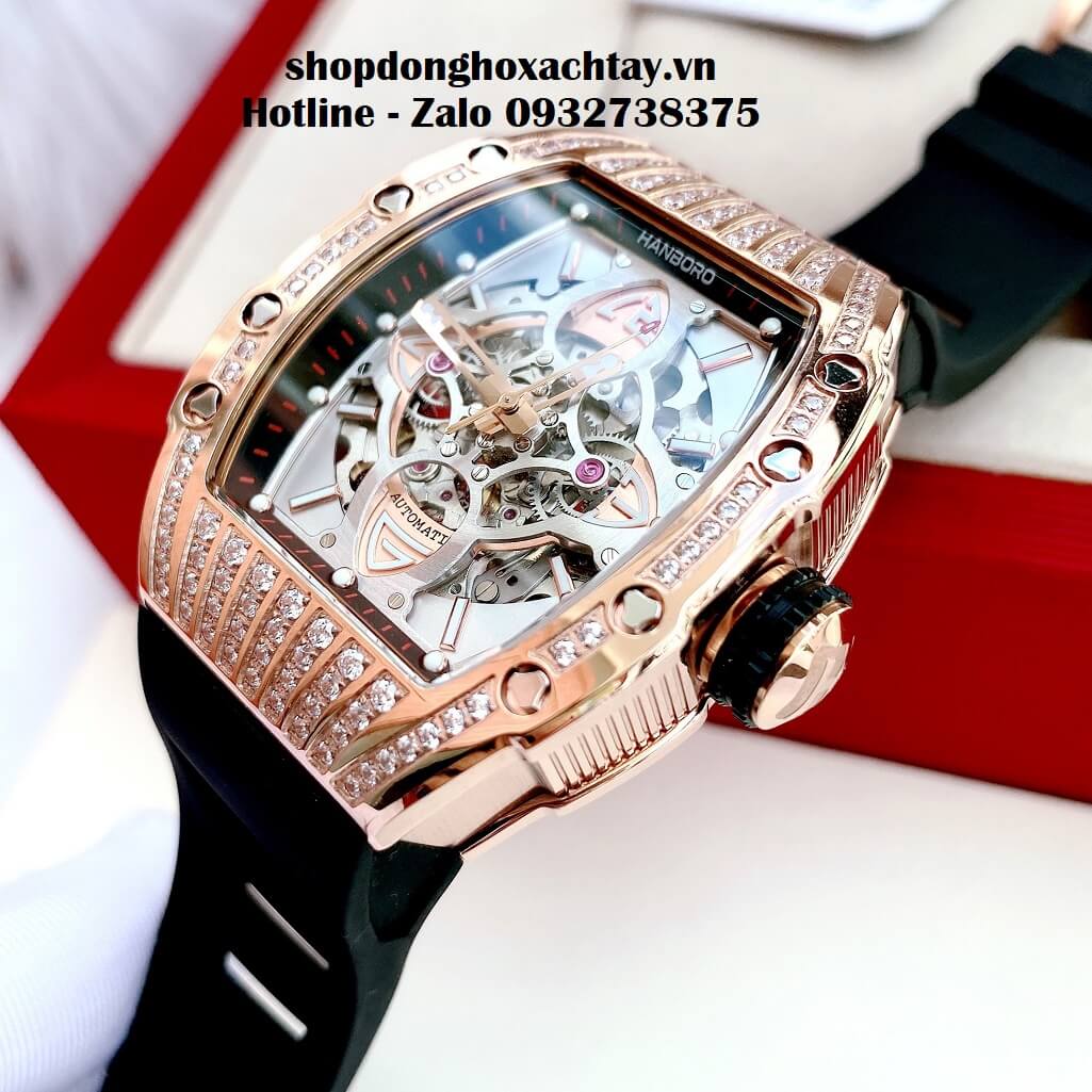 - Kích thước mặt tương đương size 44mm tròn, Hanboro dáng Richard Mille đình đám