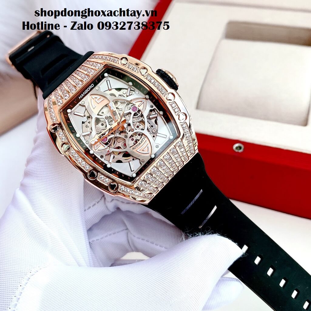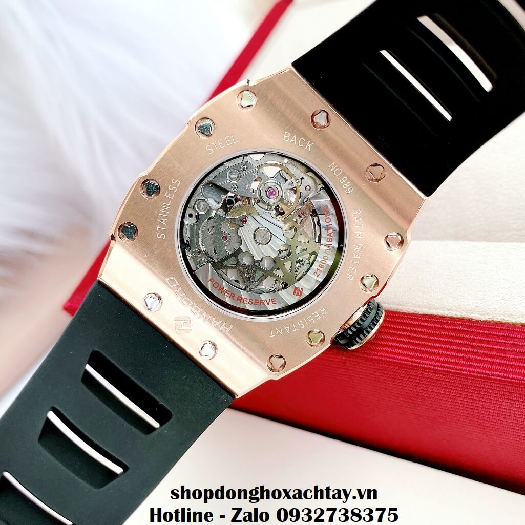 Hình Ảnh Đồng Hồ Hanboro Nam Automatic Dây Silicon Màu Đen Vỏ Rose 44mm HBR-989
