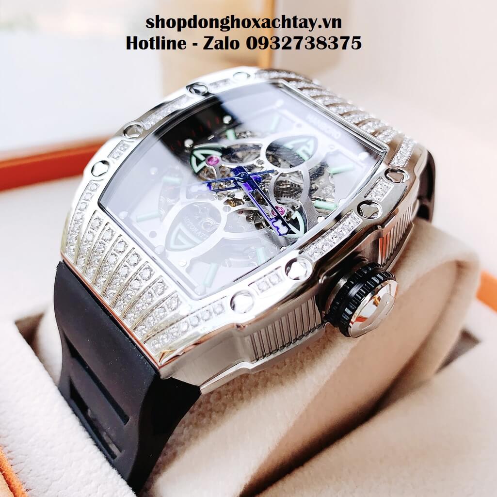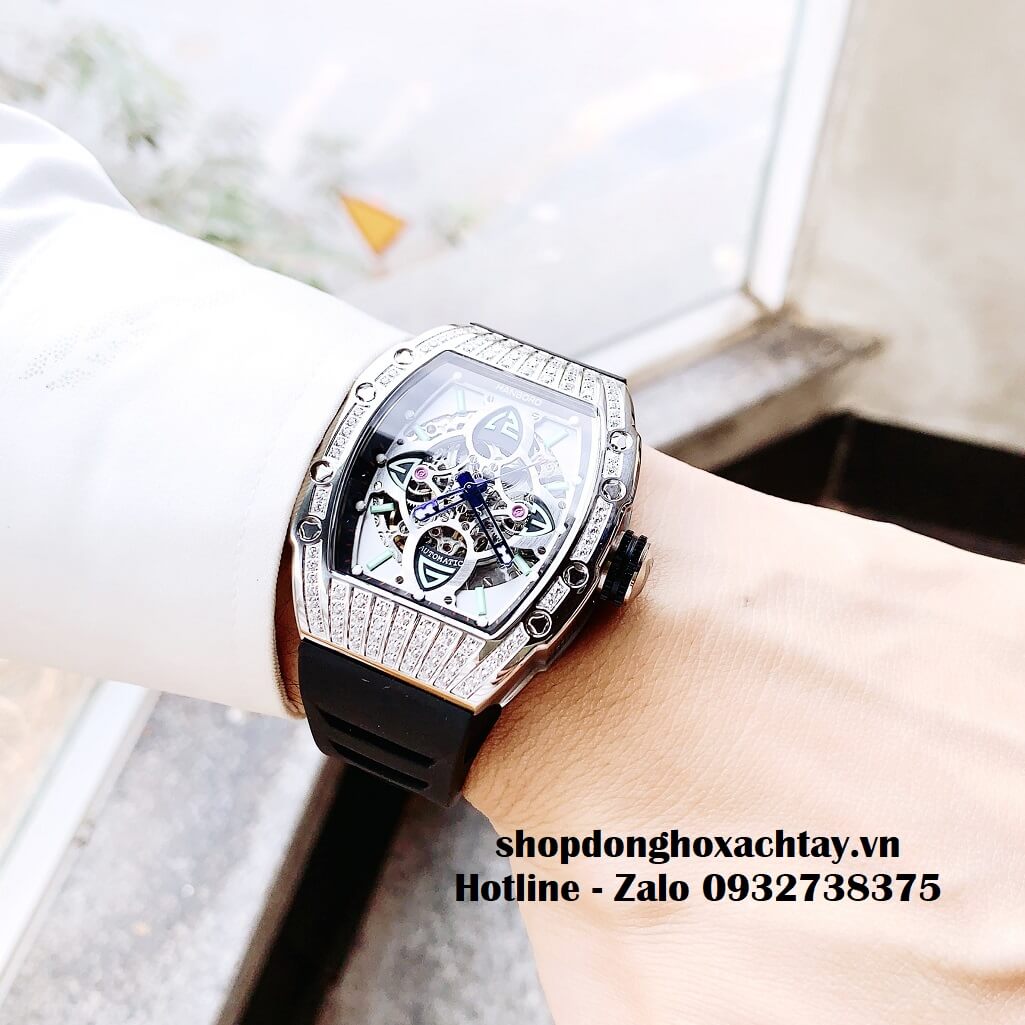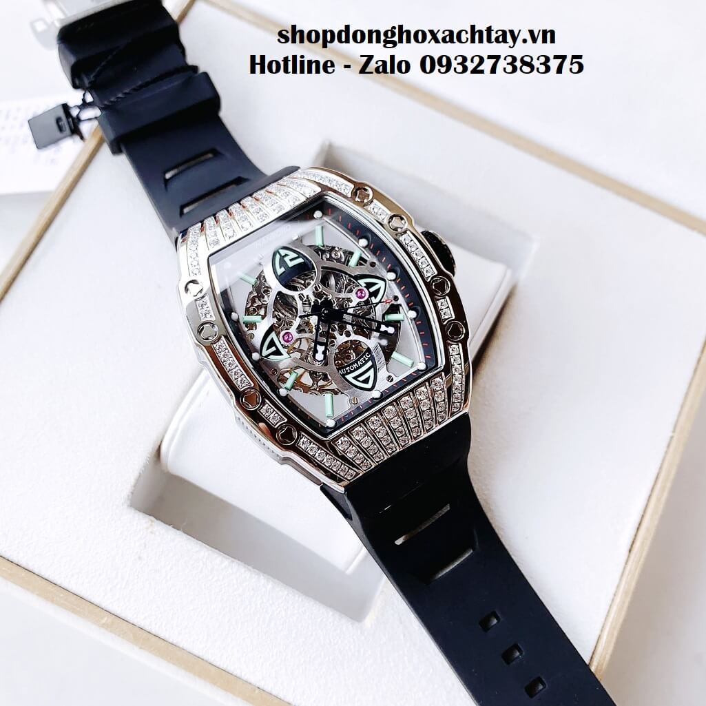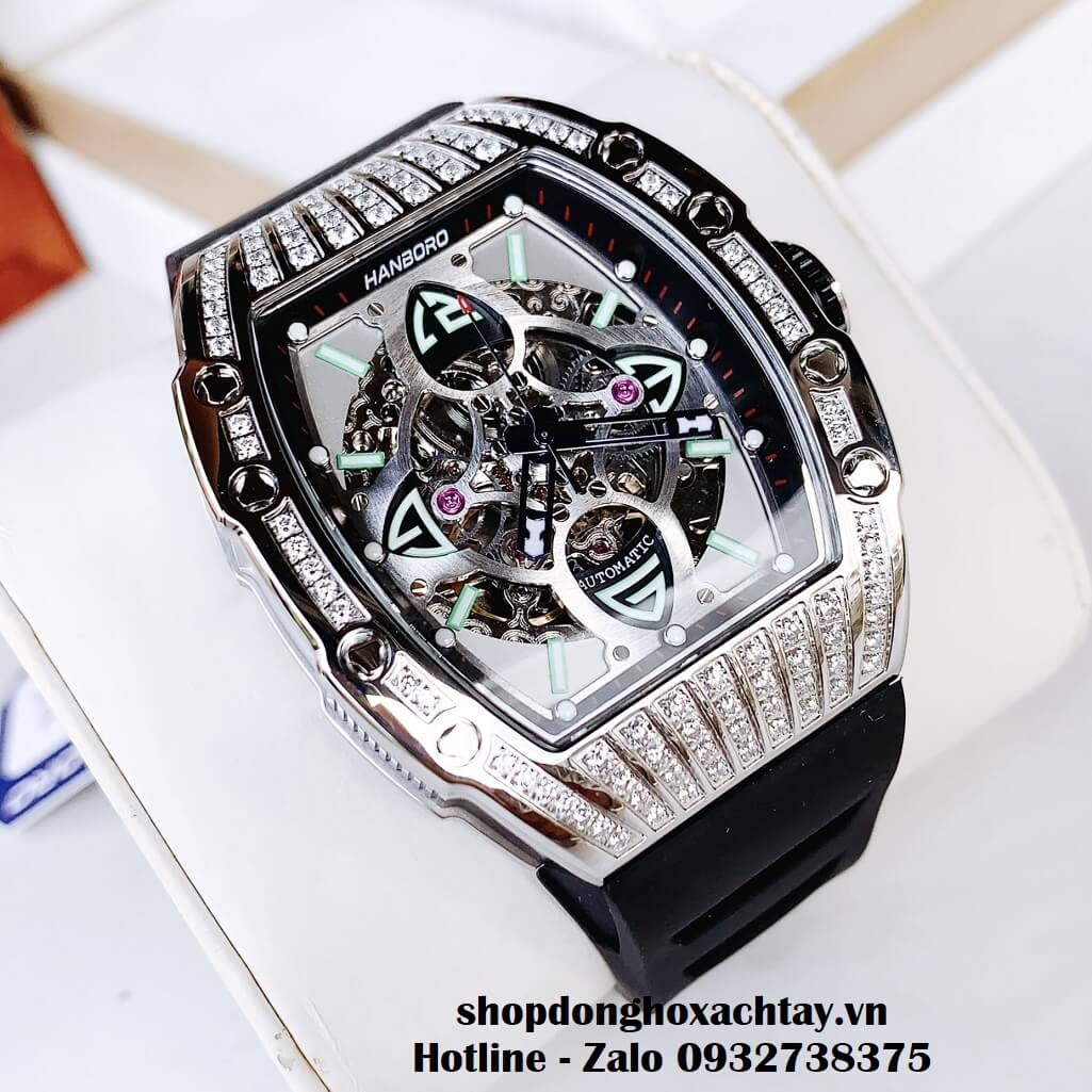 Hình Ảnh Đồng Hồ Hanboro Nam Automatic Dây Silicon Màu Đen Vỏ Silver 44mm HBR-989