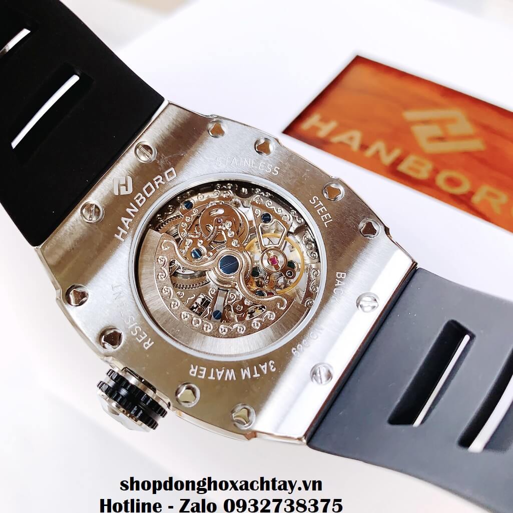 Thông số Đồng Hồ Hanboro Nam Automatic Dây Silicon Màu Đen Vỏ Silver 44mm HBR-989