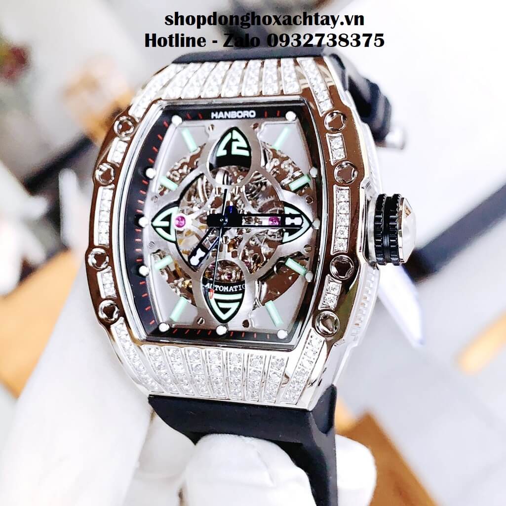 - Kích thước mặt tương đương size 44mm tròn, Hanboro dáng Richard Mille đình đám