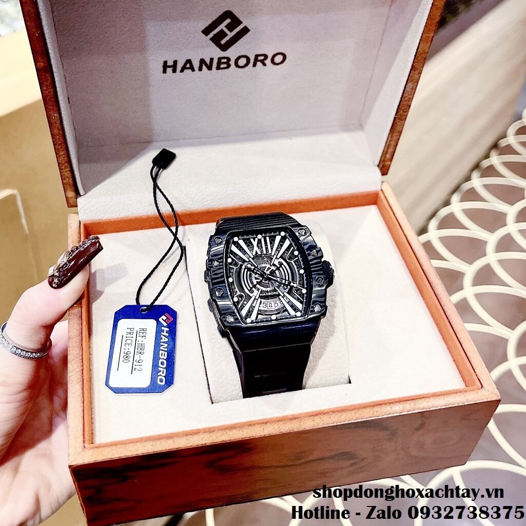 Thông số Đồng Hồ Hanboro Nam Tự Động Dây Silicone Đen Vỏ Đen 40x51mm 993 chính hãng