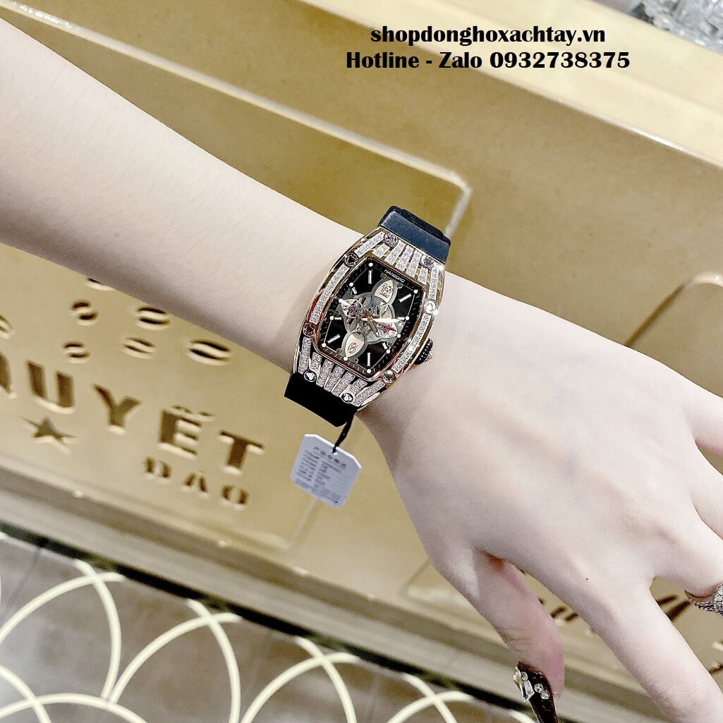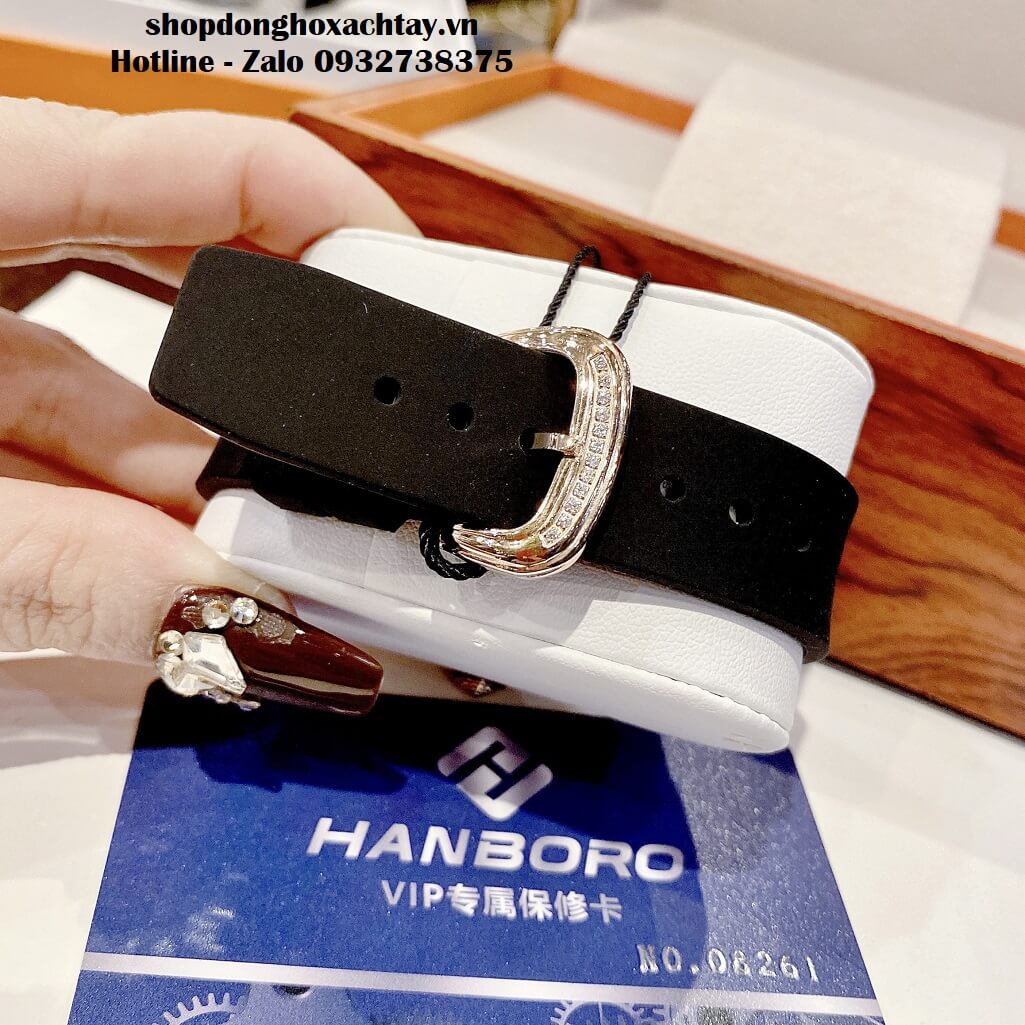 ➖ Hanboro by Huboler chính hãng dành cho nữ mặt dáng chữ nhật, toàn bộ mặt đồng hồ được đính đá Swarovski sang trọng