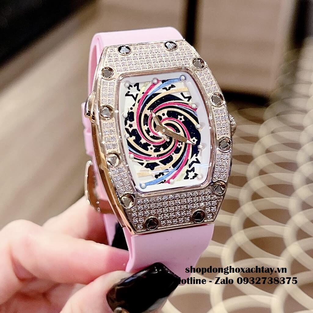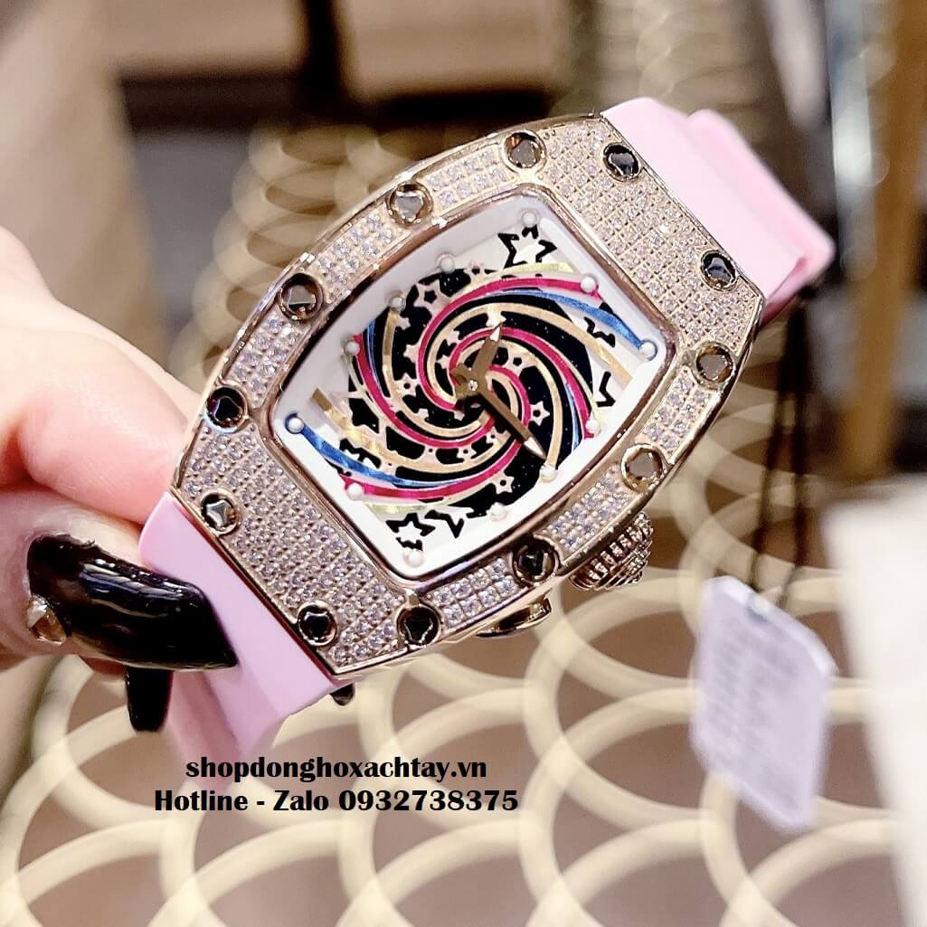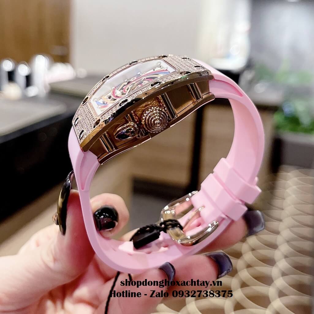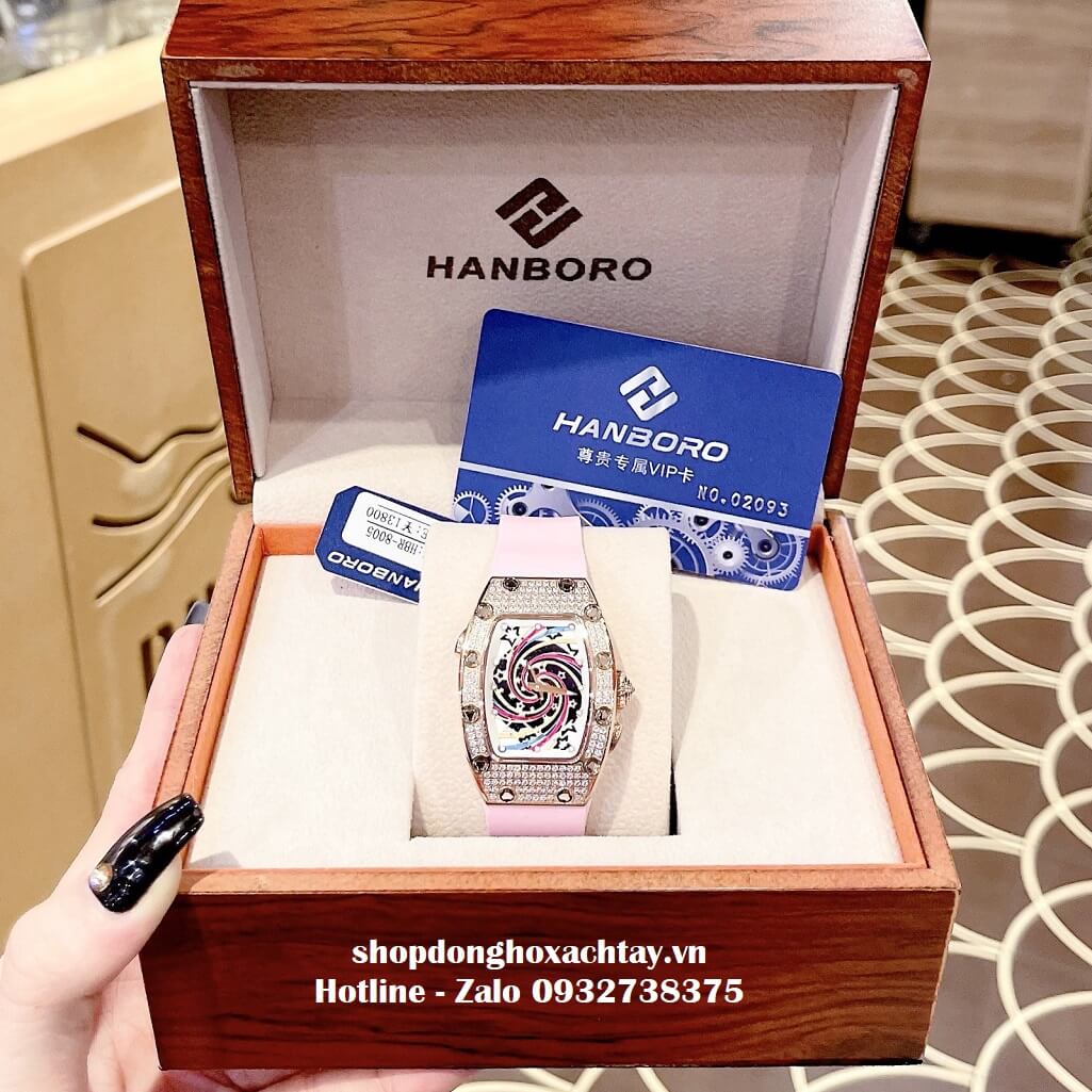 Đồng Hồ Hanboro Nữ Dây Silicon Hồng Nhạt Mặt Kẹo Đính Đá Rose 36mm Chính Hãng