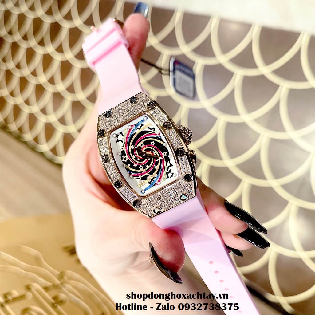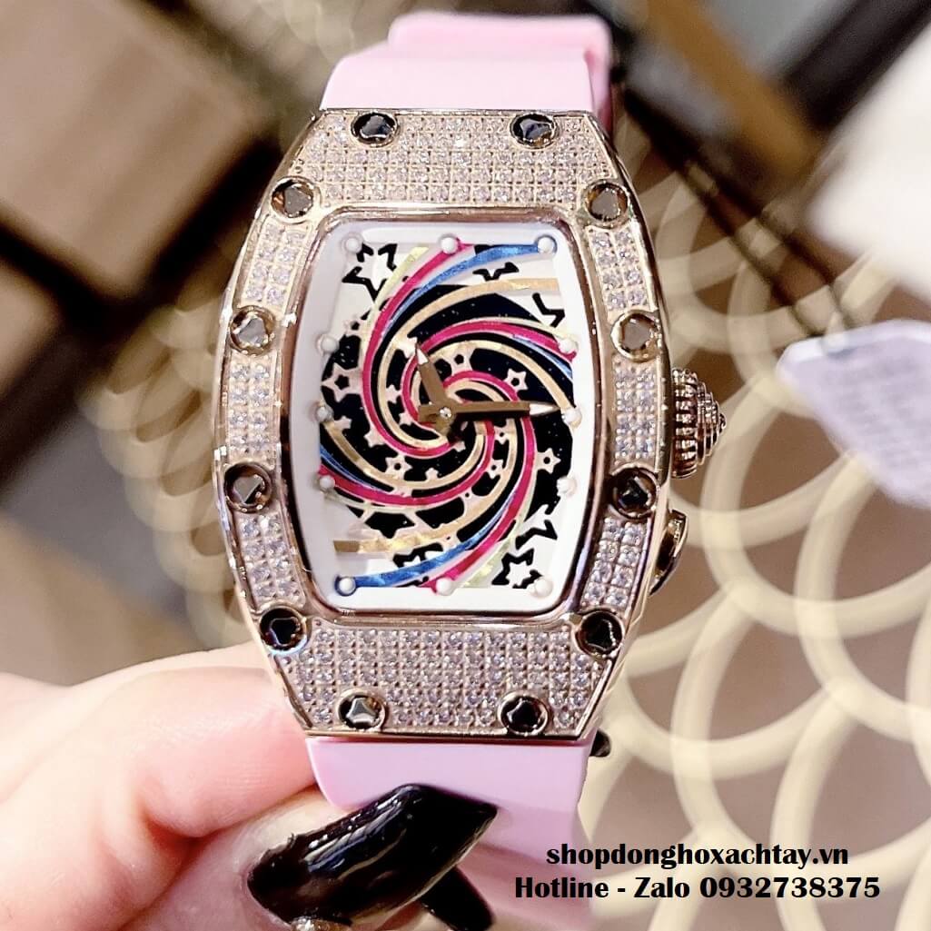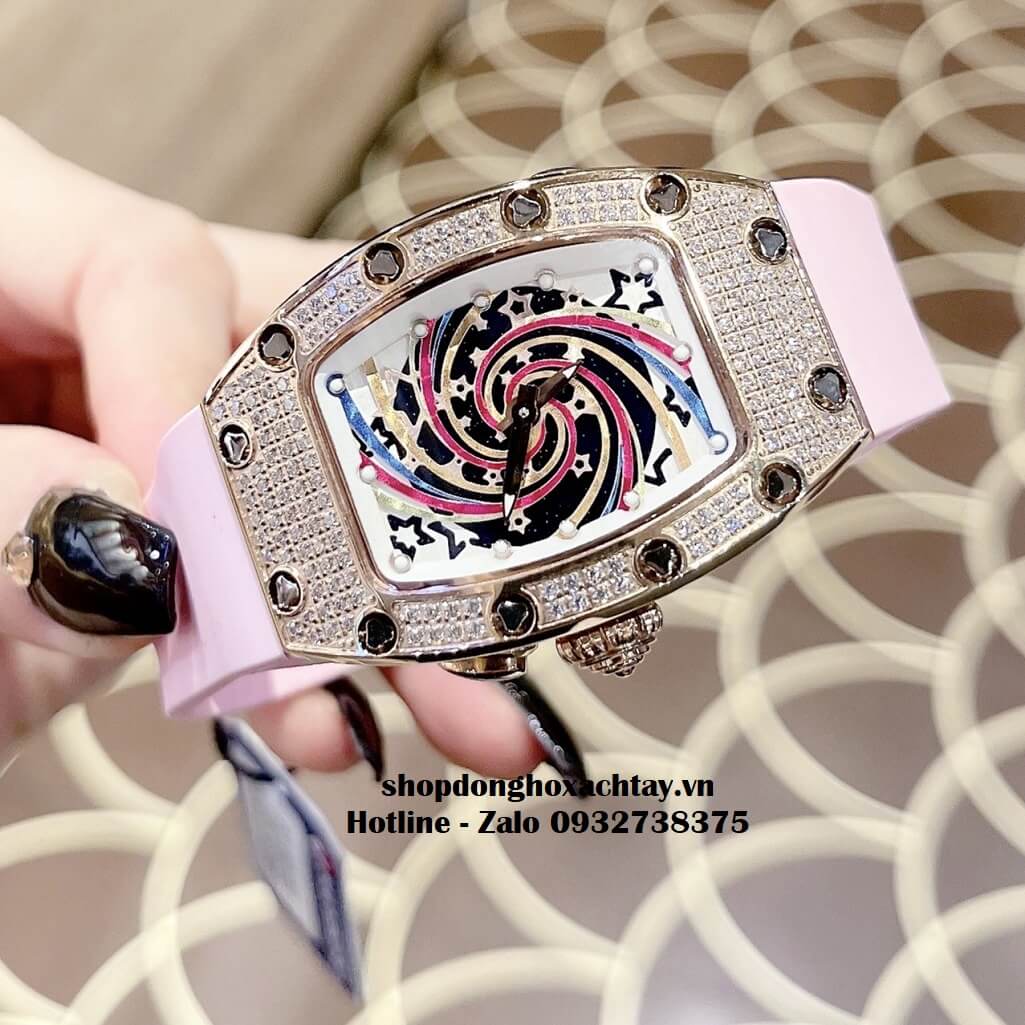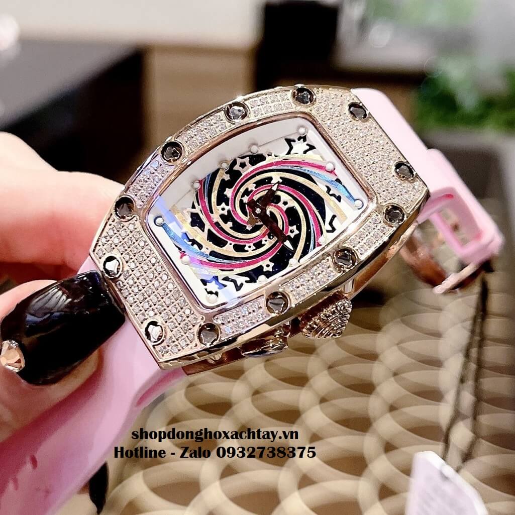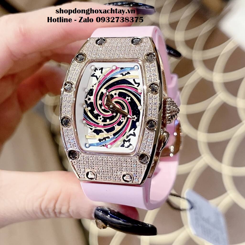 Đồng Hồ Hanboro Nữ Dây Silicon Hồng Nhạt Mặt Kẹo Đính Đá Rose 36mm Chính Hãng