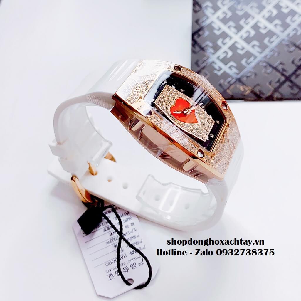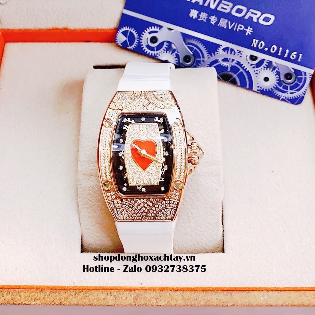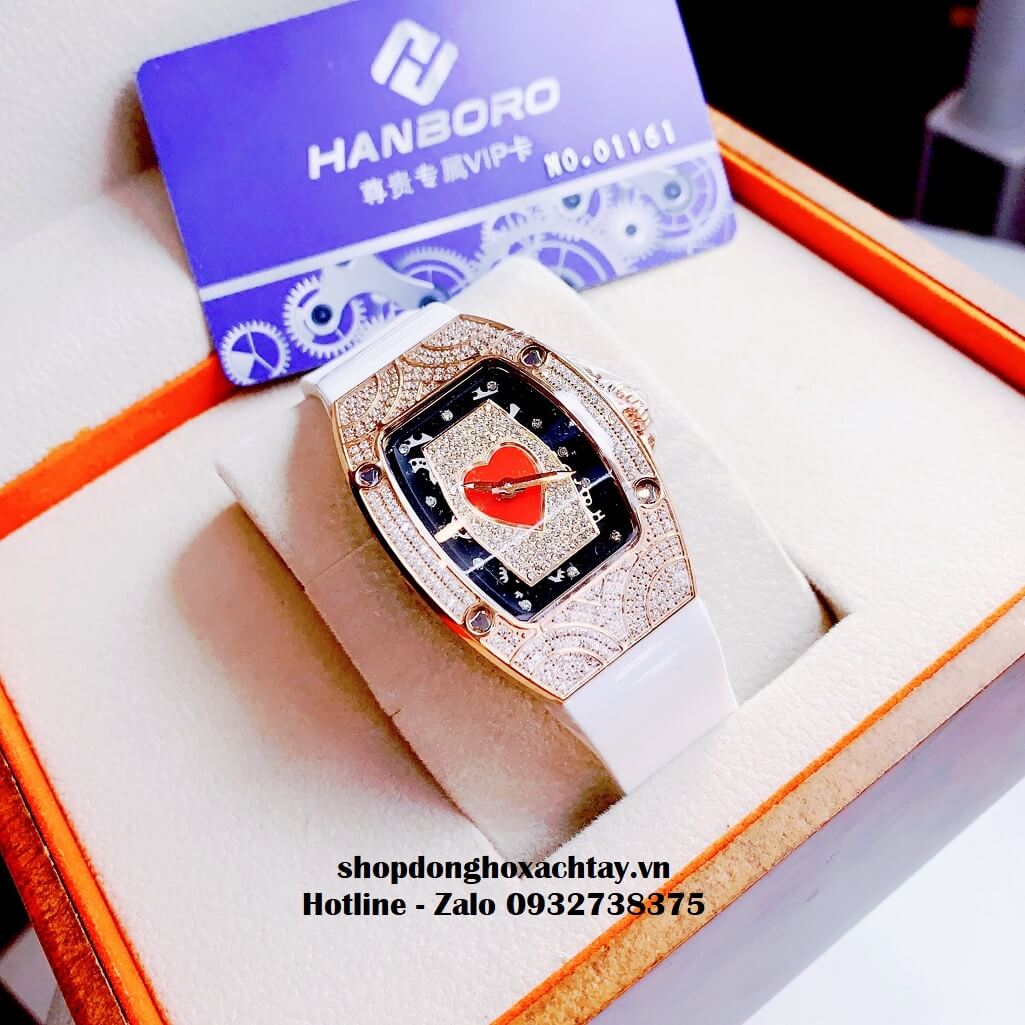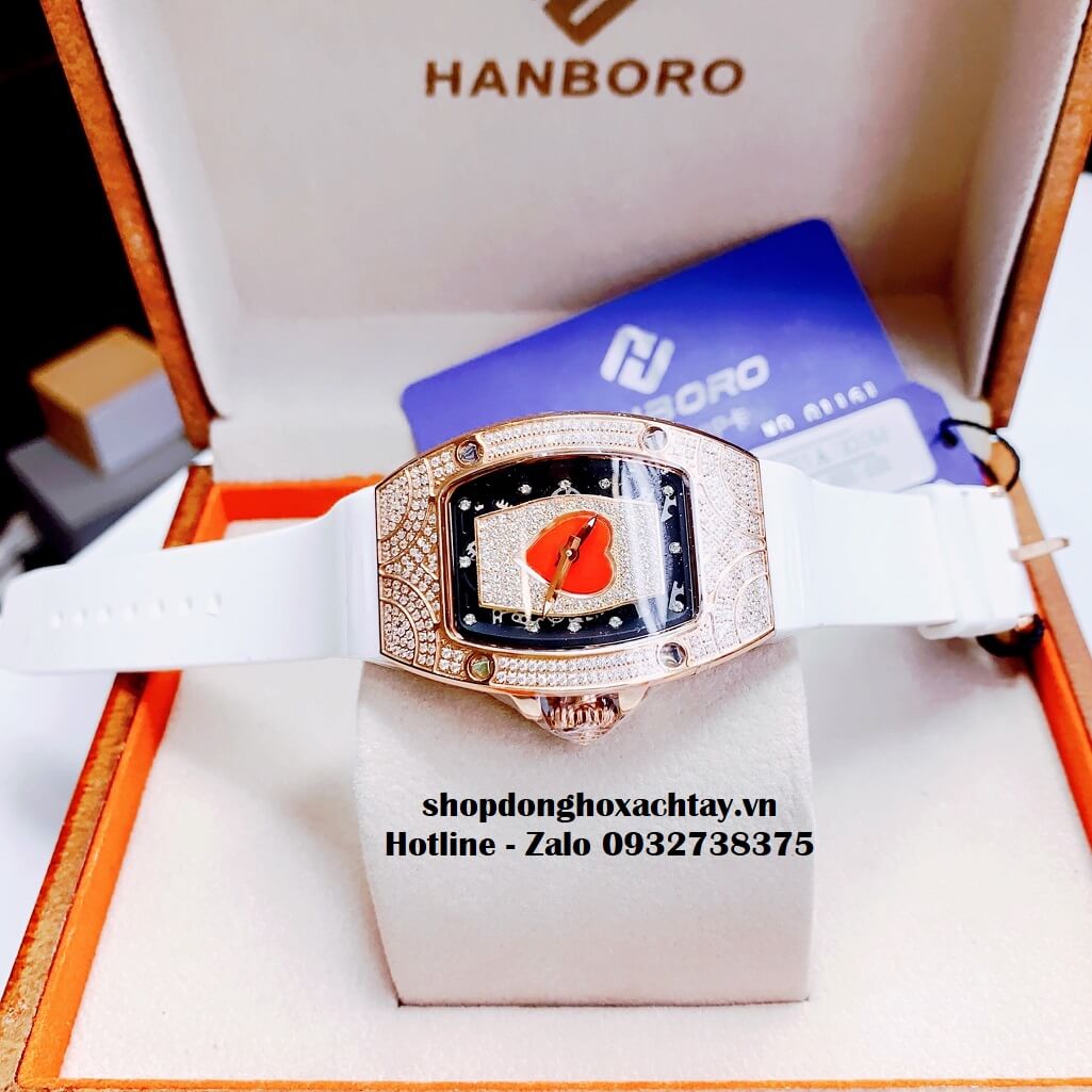 Đồng Hồ Hanboro Nữ Dây Silicon Trắng Mặt Trái Tim Đá Rose 36mm Chính Hãng