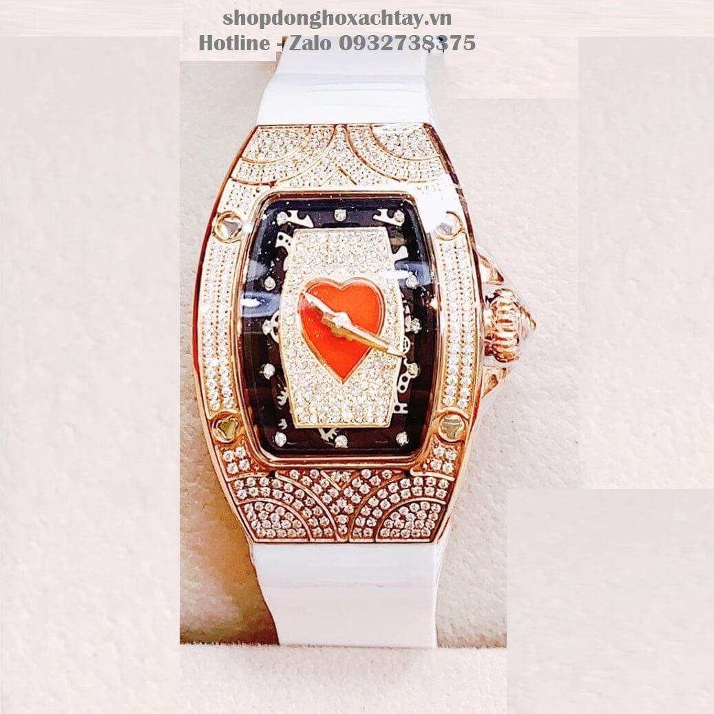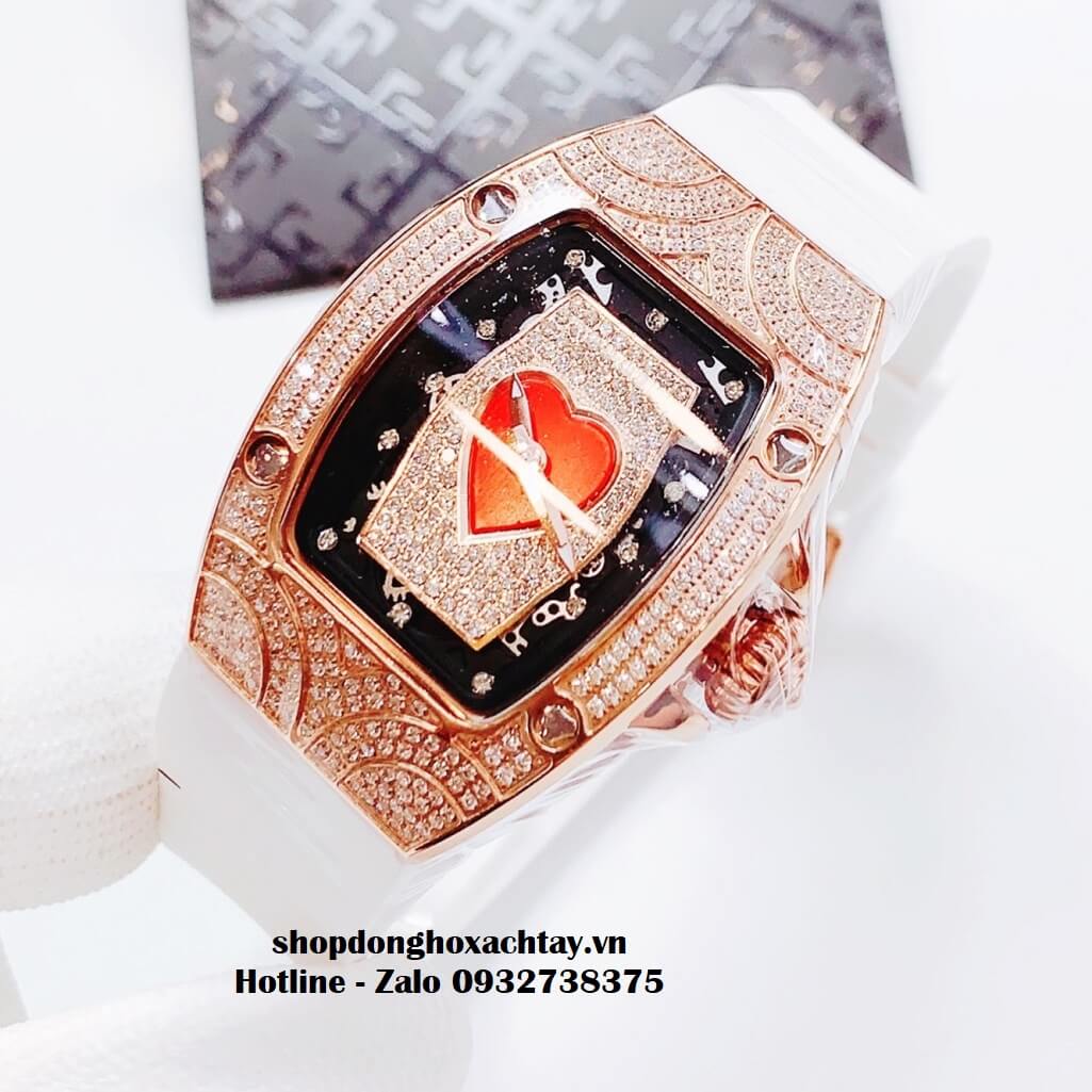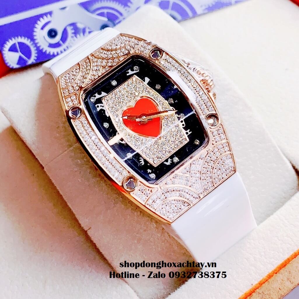 Đồng Hồ Hanboro Nữ Dây Silicon Trắng Mặt Trái Tim Đá Rose 36mm Chính Hãng