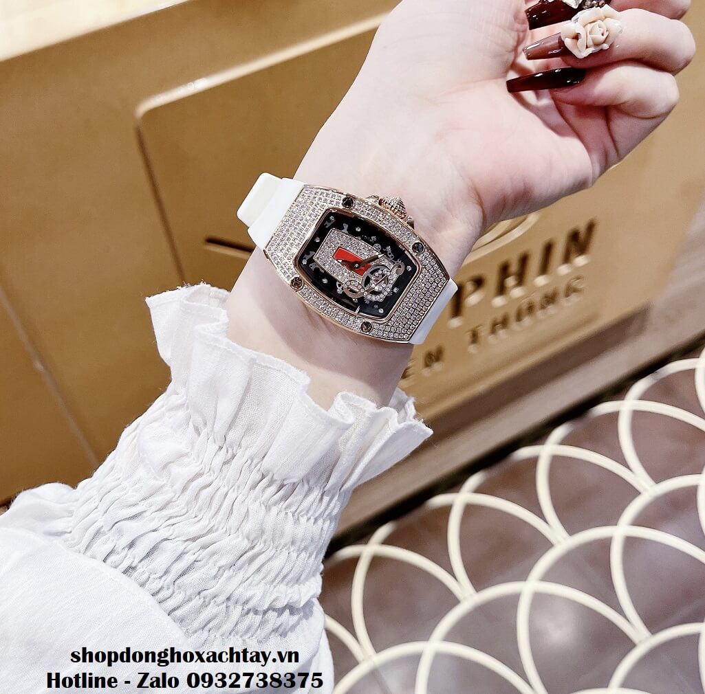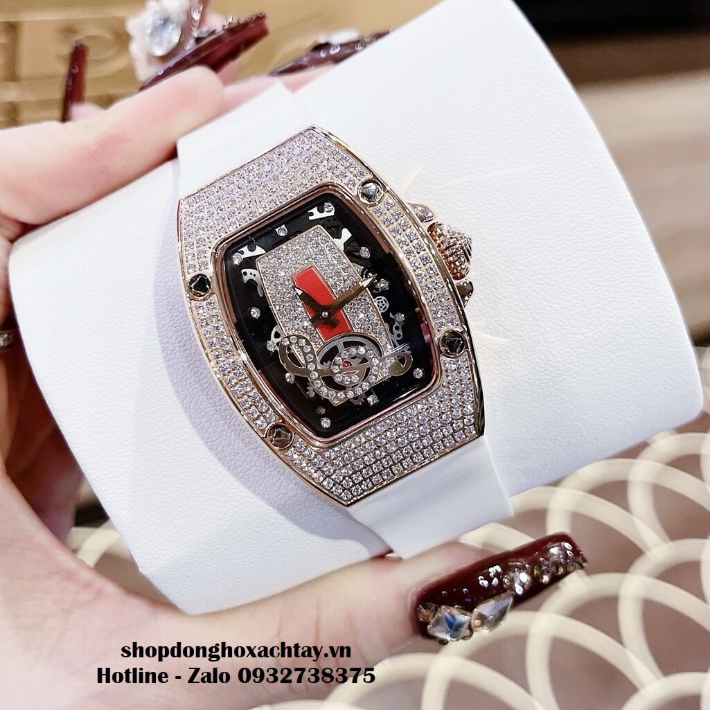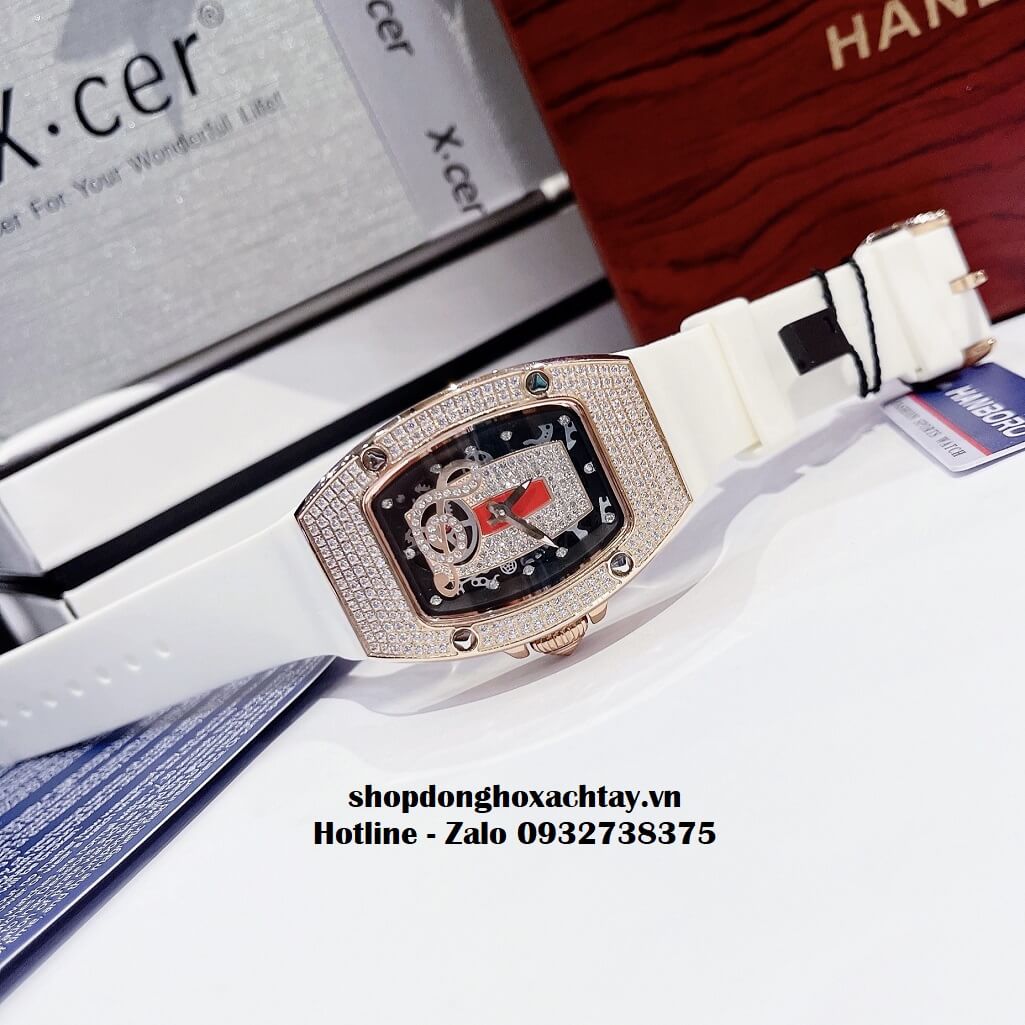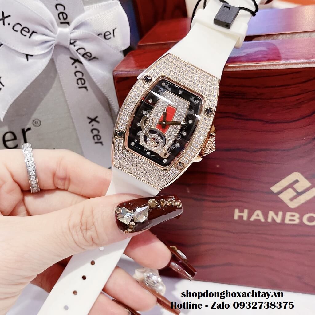 ➖ Hanboro by Huboler chính hãng dành cho nữ mặt dáng chữ nhật, toàn bộ mặt đồng hồ được đính đá Swarovski sang trọng