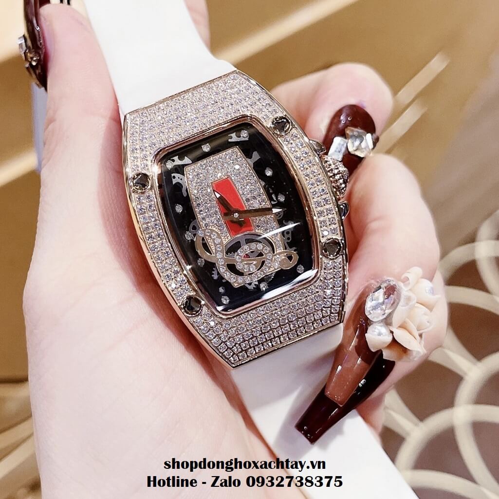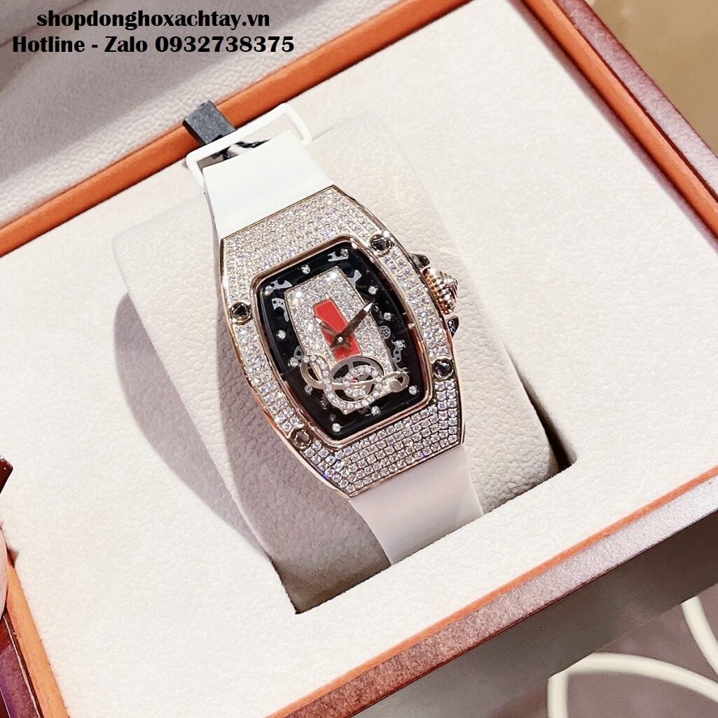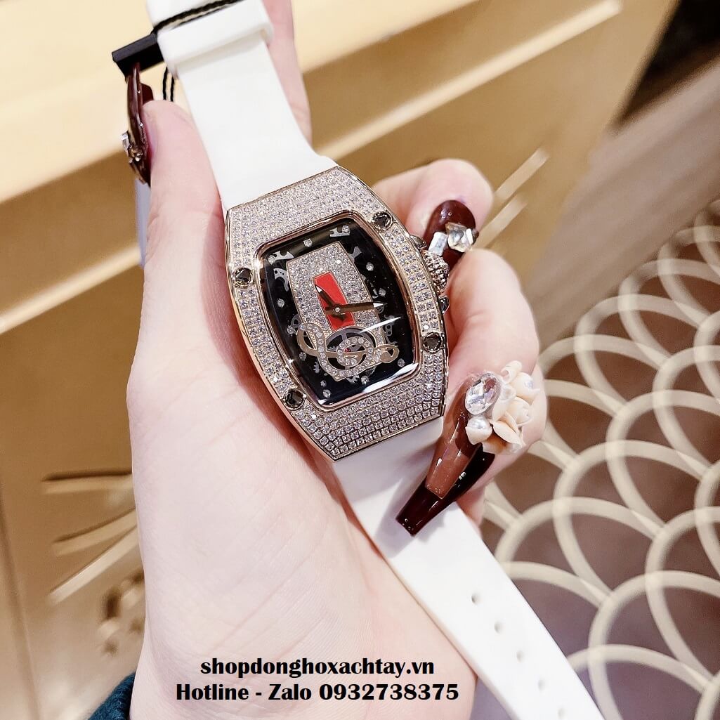 Đồng Hồ Hanboro Nữ Dây Silicon Trắng Nốt Nhạc Lõi Đỏ Vỏ Rose 36mm Chính Hãng