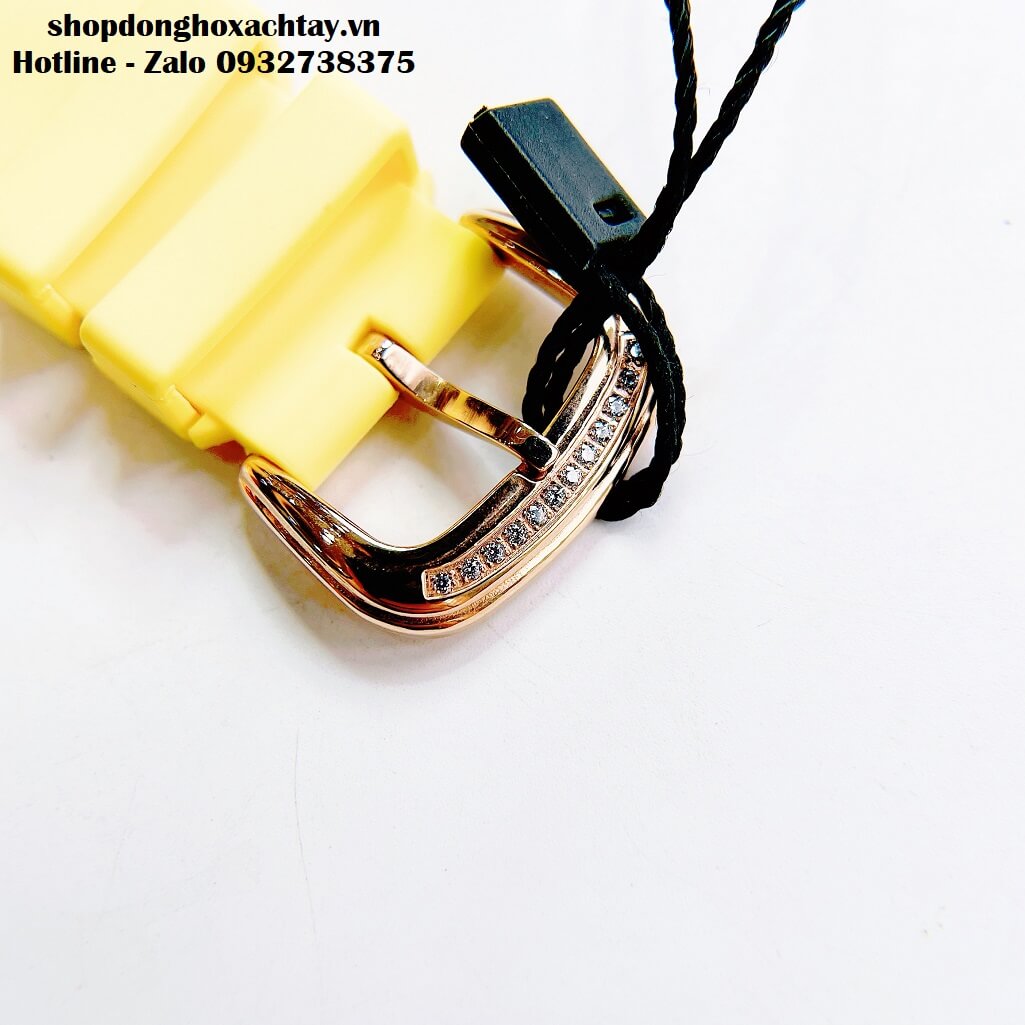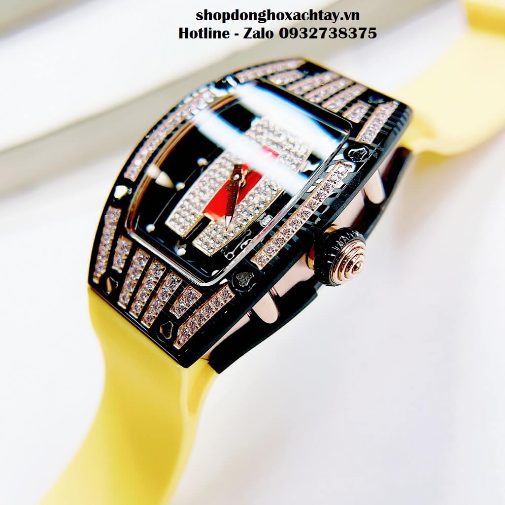 Đồng Hồ Hanboro Nữ Dây Silicon Vàng Đá Đen Lõi Đỏ 36mm Chính Hãng