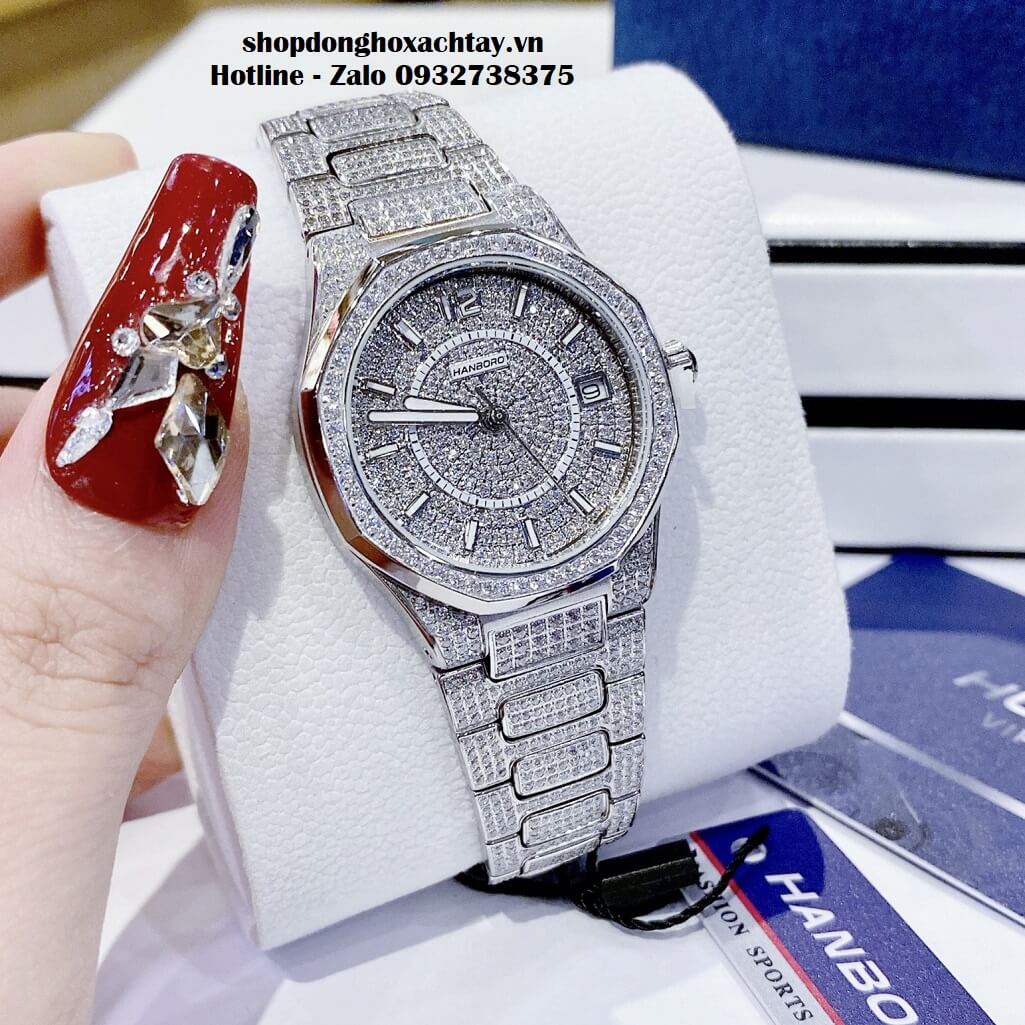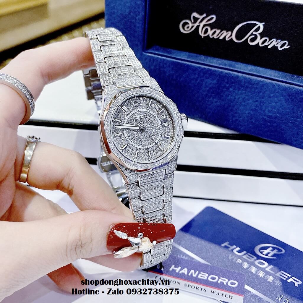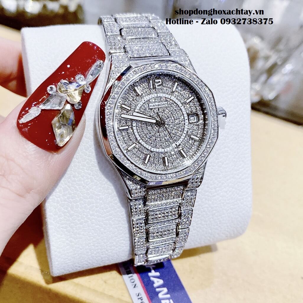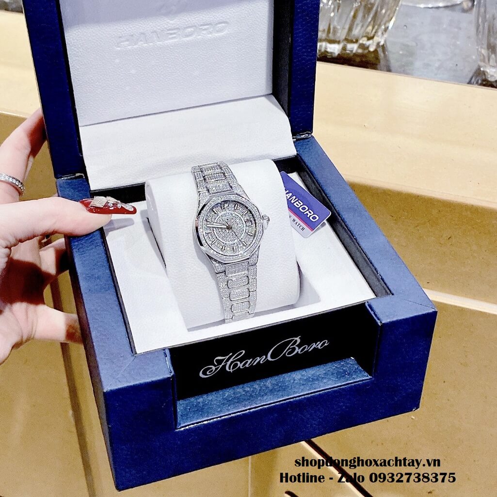 ➖ Đồng Hanboro chính hãng dành cho nữ, toàn bộ mặt đồng hồ được đính đá Swarovski sang trọng