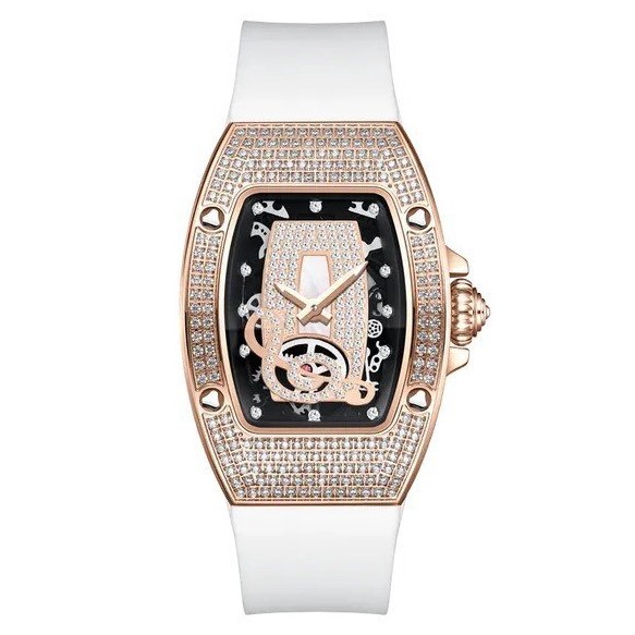 Hình ảnh Đồng Hồ Hanboro Nữ HBR 8003 Dây Cao Su Trắng Rose Gold 31x44mm Chính Hãng