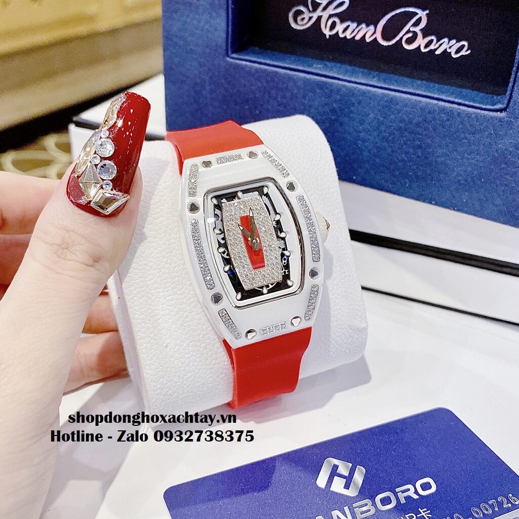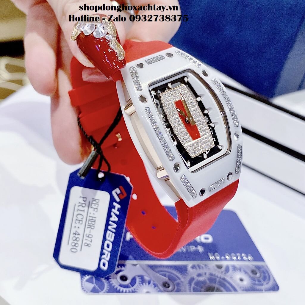 Hình ảnh Đồng Hồ Hanboro Nữ Silicon Màu Đỏ Dáng Richard Mille 36mm HBR-978 - Hanboro chính hãng