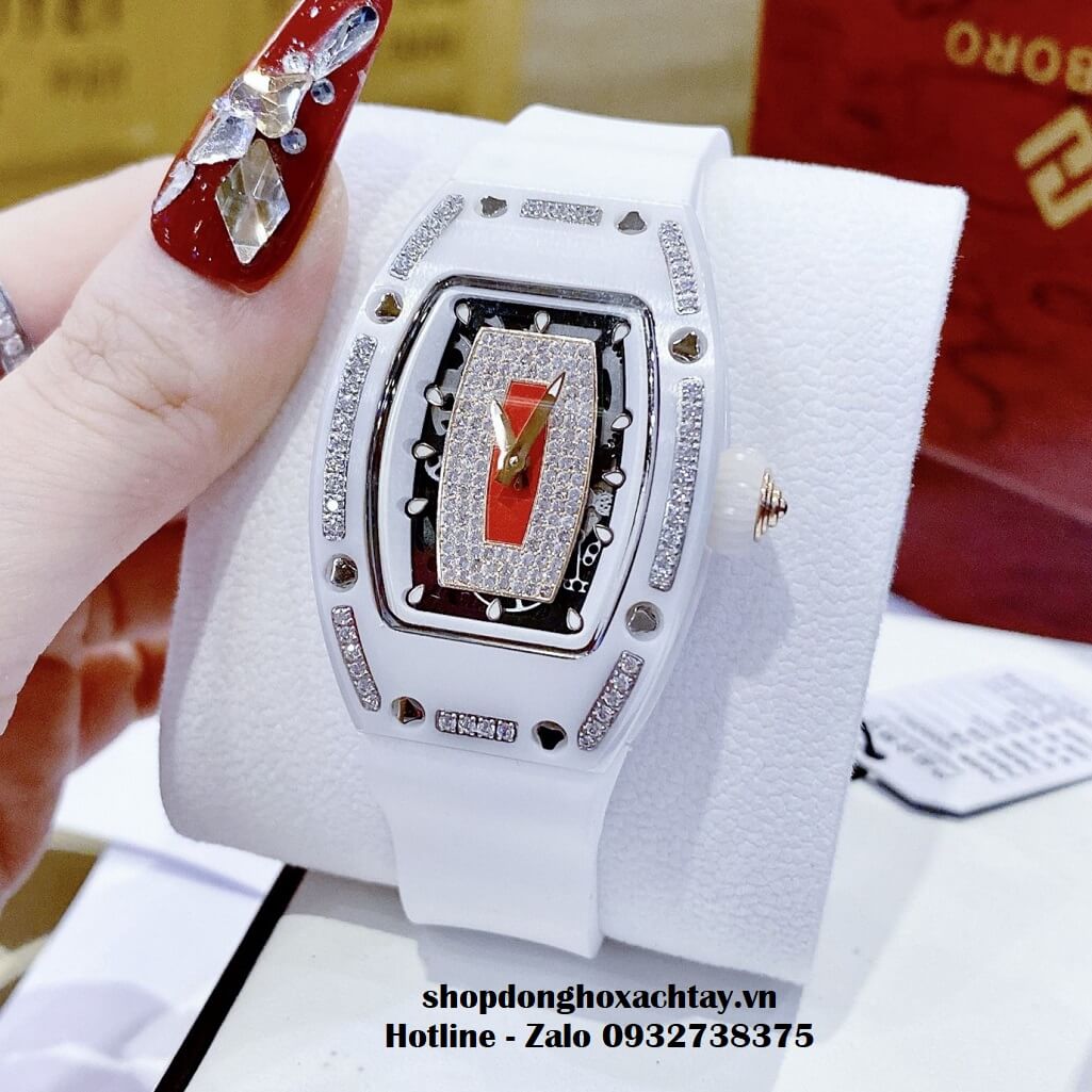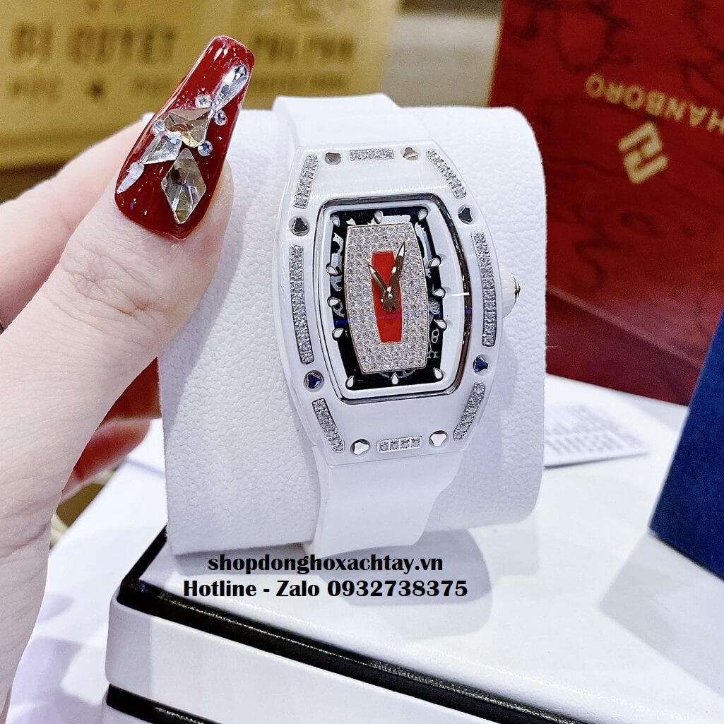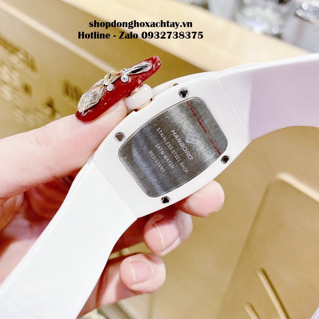 Thông số chi tiết về Đồng Hồ Hanboro Nữ Silicon Trắng Lõi Đỏ Dáng Richard Mille 36mm HBR-978