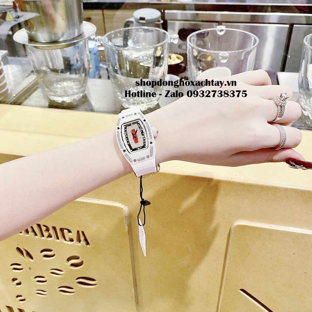 Hình ảnh Đồng Hồ Hanboro Nữ Silicon Trắng Lõi Đỏ Dáng Richard Mille 36mm HBR-978 - Hanboro chính hãng