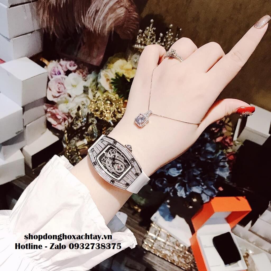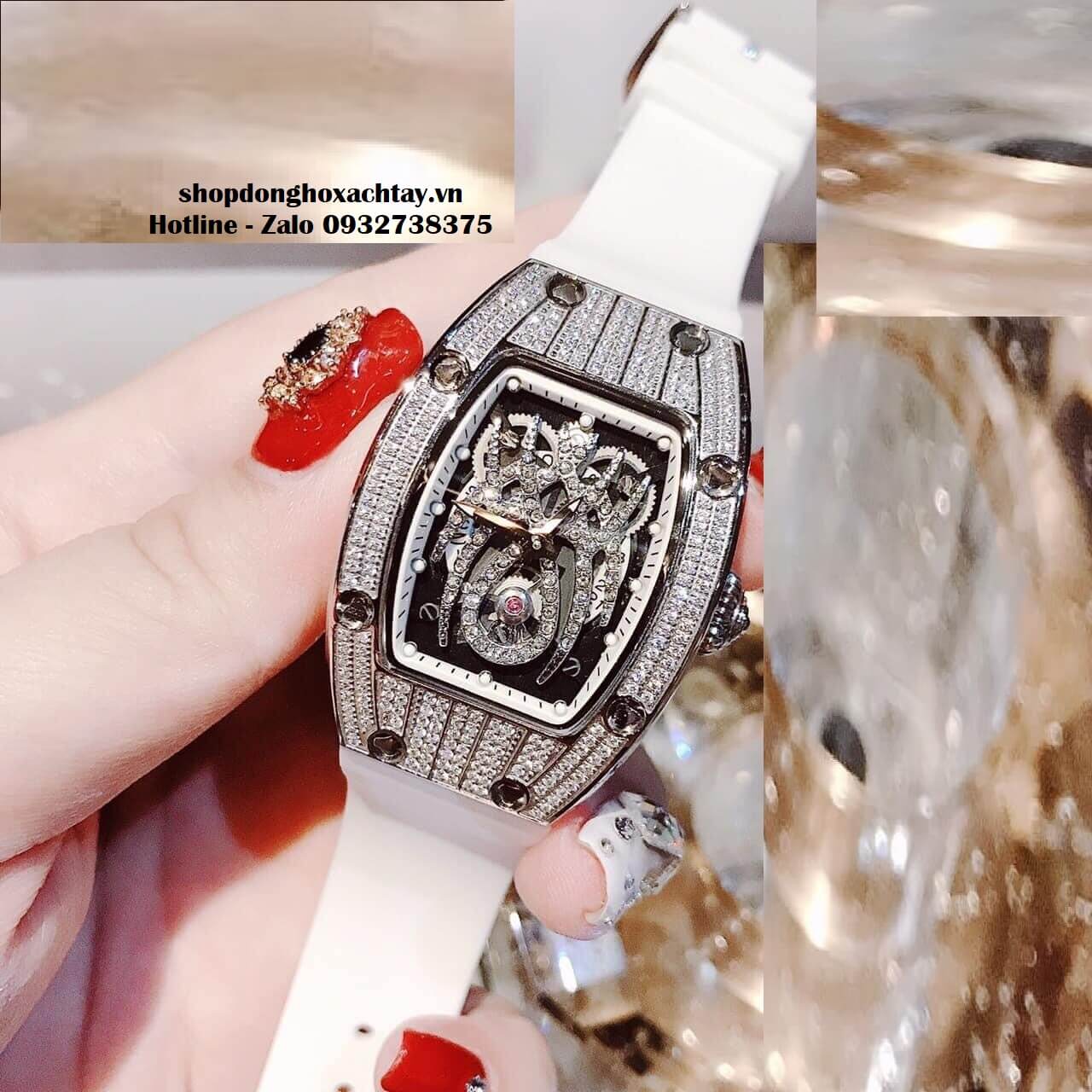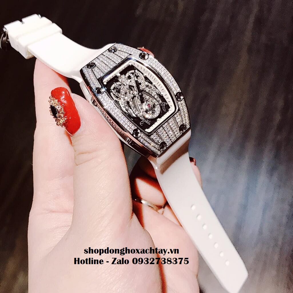 Đồng Hồ Hanboro Nữ Silicon Trắng Mặt Nhện Đá Sọc Silver 36mm Chính Hãng