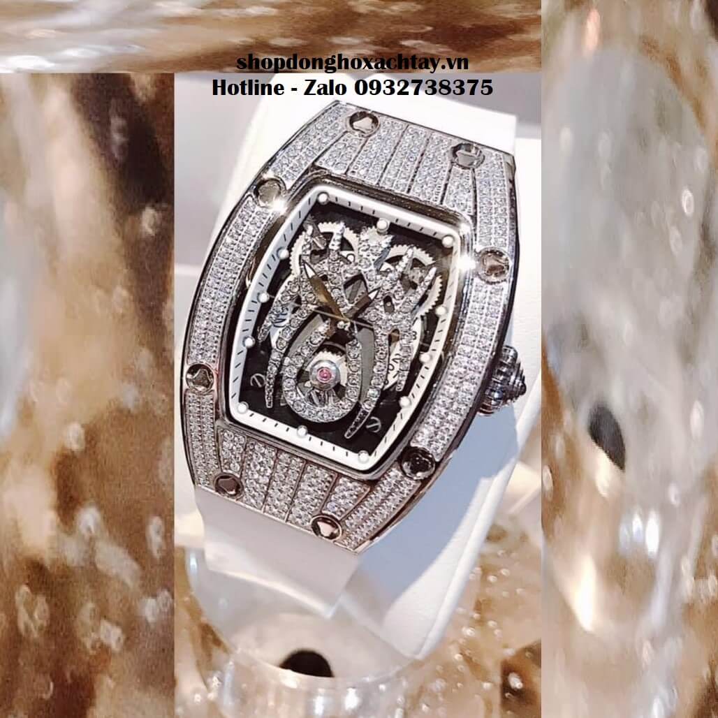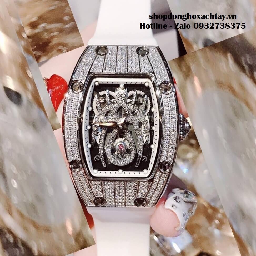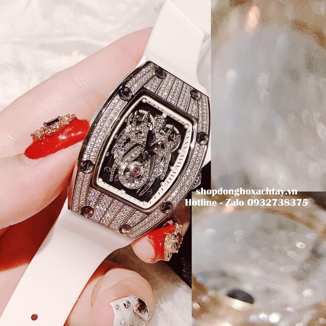 Đồng Hồ Hanboro Nữ Silicon Trắng Mặt Nhện Đá Sọc Silver 36mm Chính Hãng