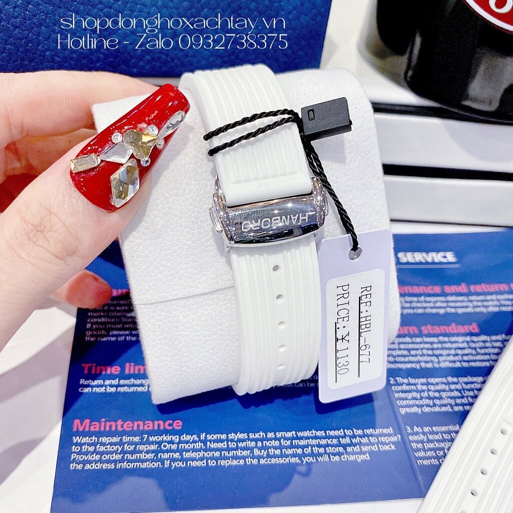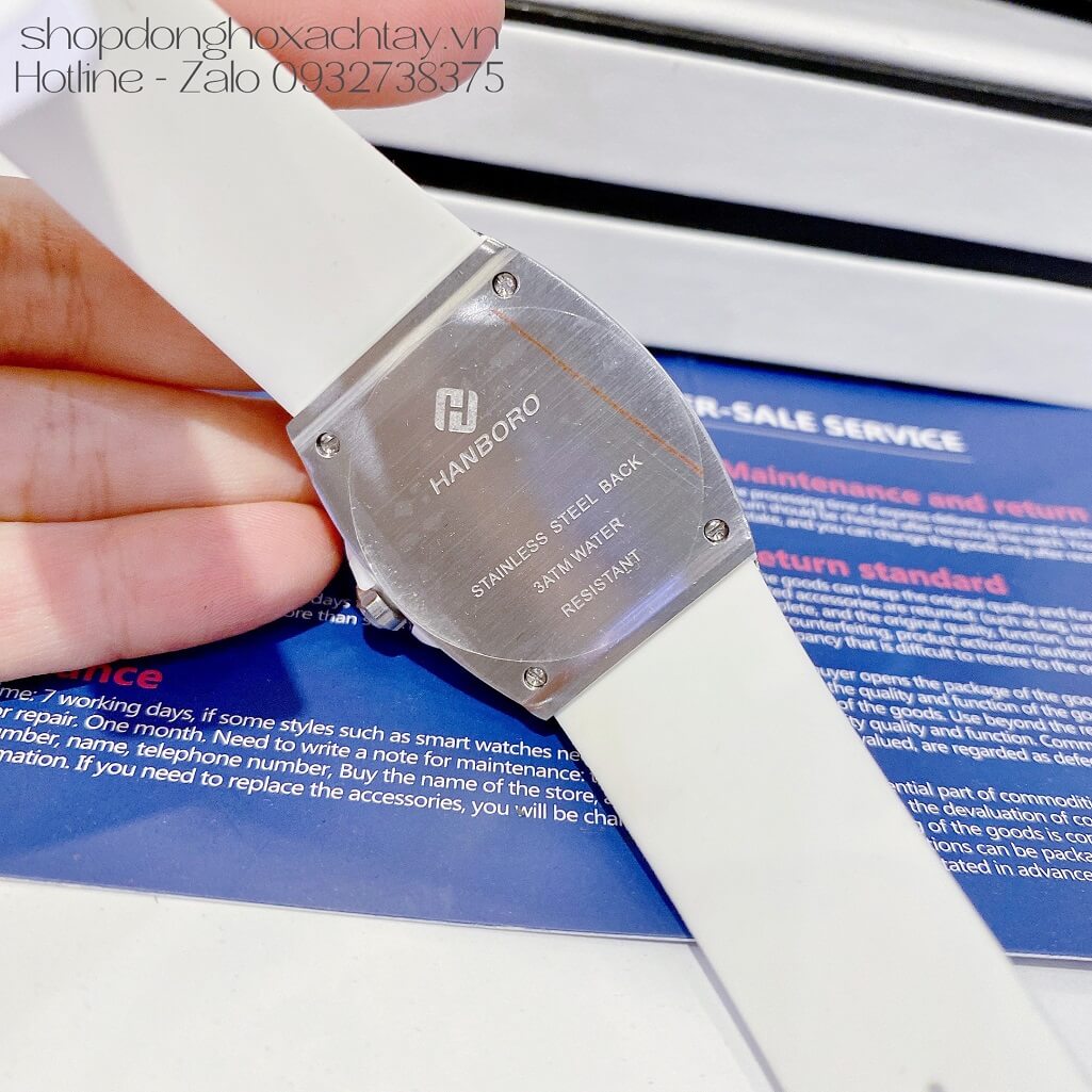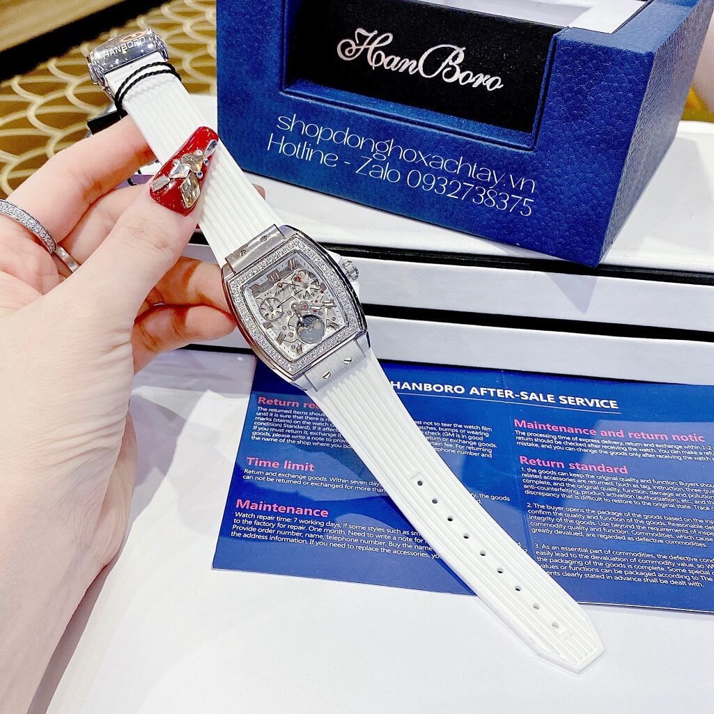 Đồng Hồ Hanboro Nữ Silicon Trắng Vỏ Silver Đính Đá 36mm Chính Hãng