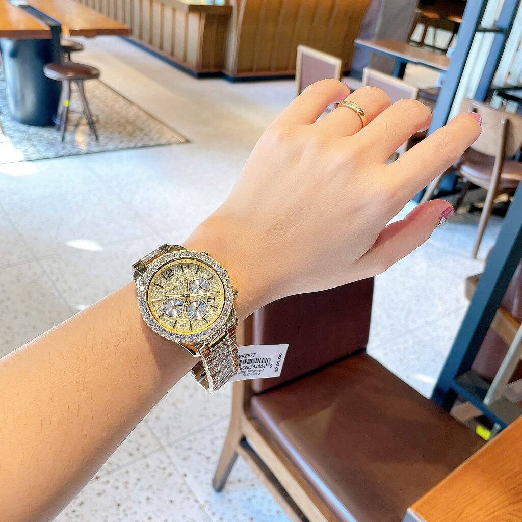 - Mặt đồng hồ size 42mm lên tay cực xinh cho các chị em có cổ tay to hoặc các anh trai vẫn mang được, chạy full 6 kim đặc trưng của MK