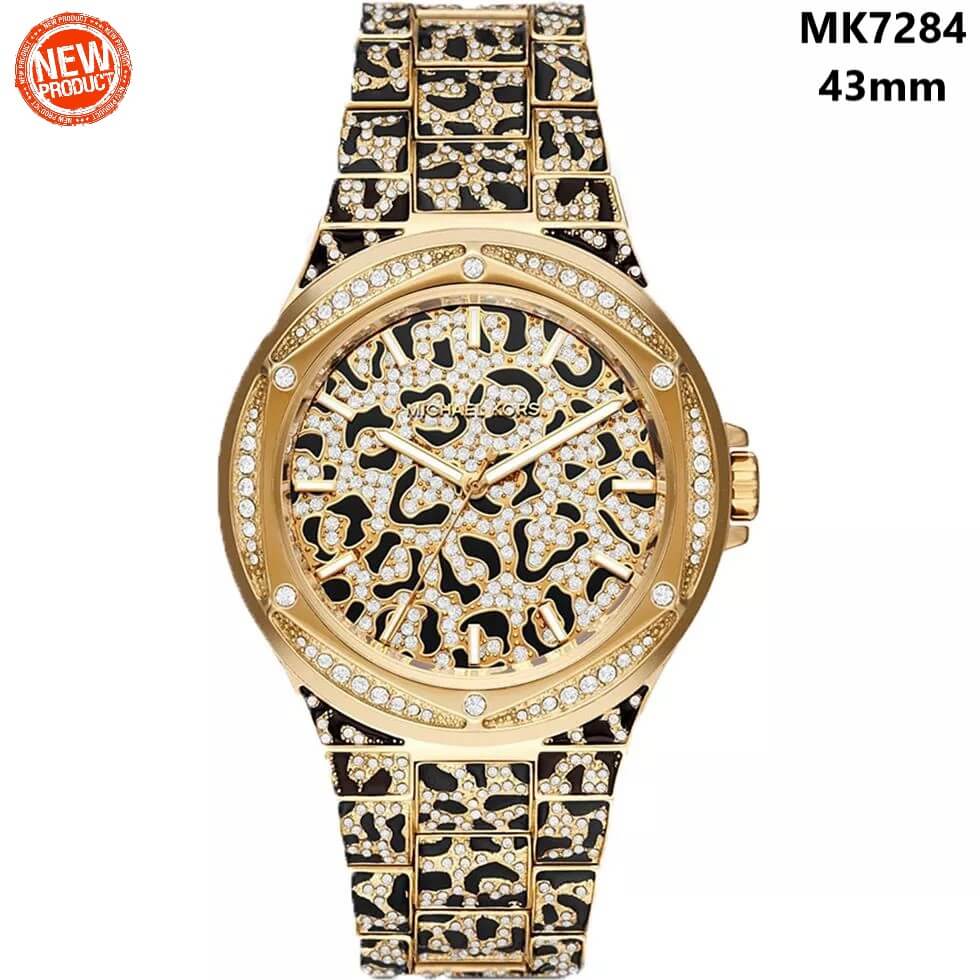 - Đồng Hồ Michael Kors Lennox MK7284 Dây Kim Loại Họa Tiết Báo Đốm Đính Đá Size 43mm