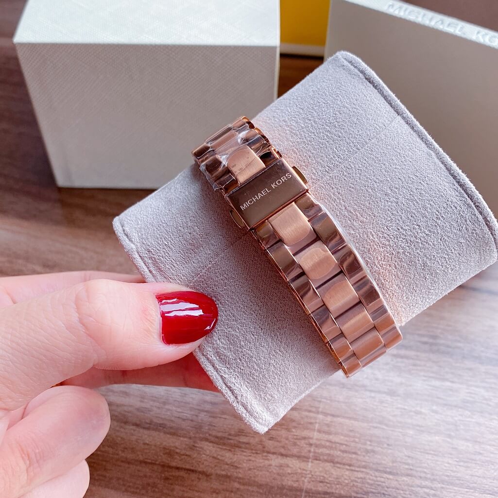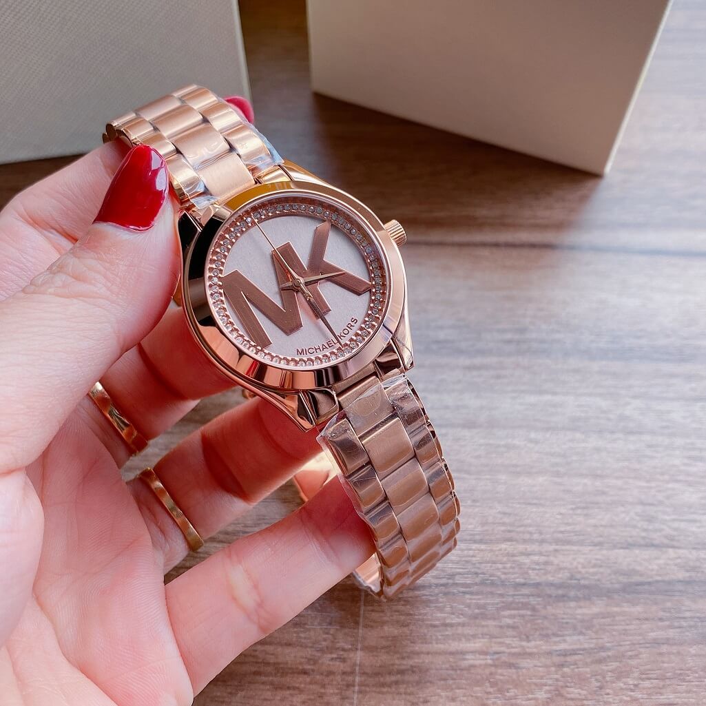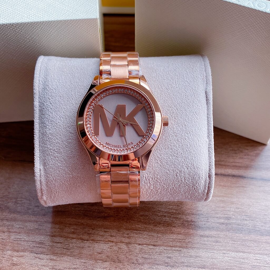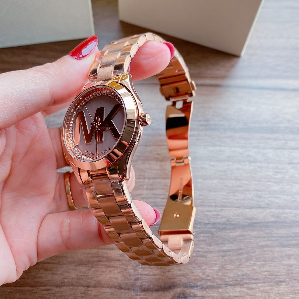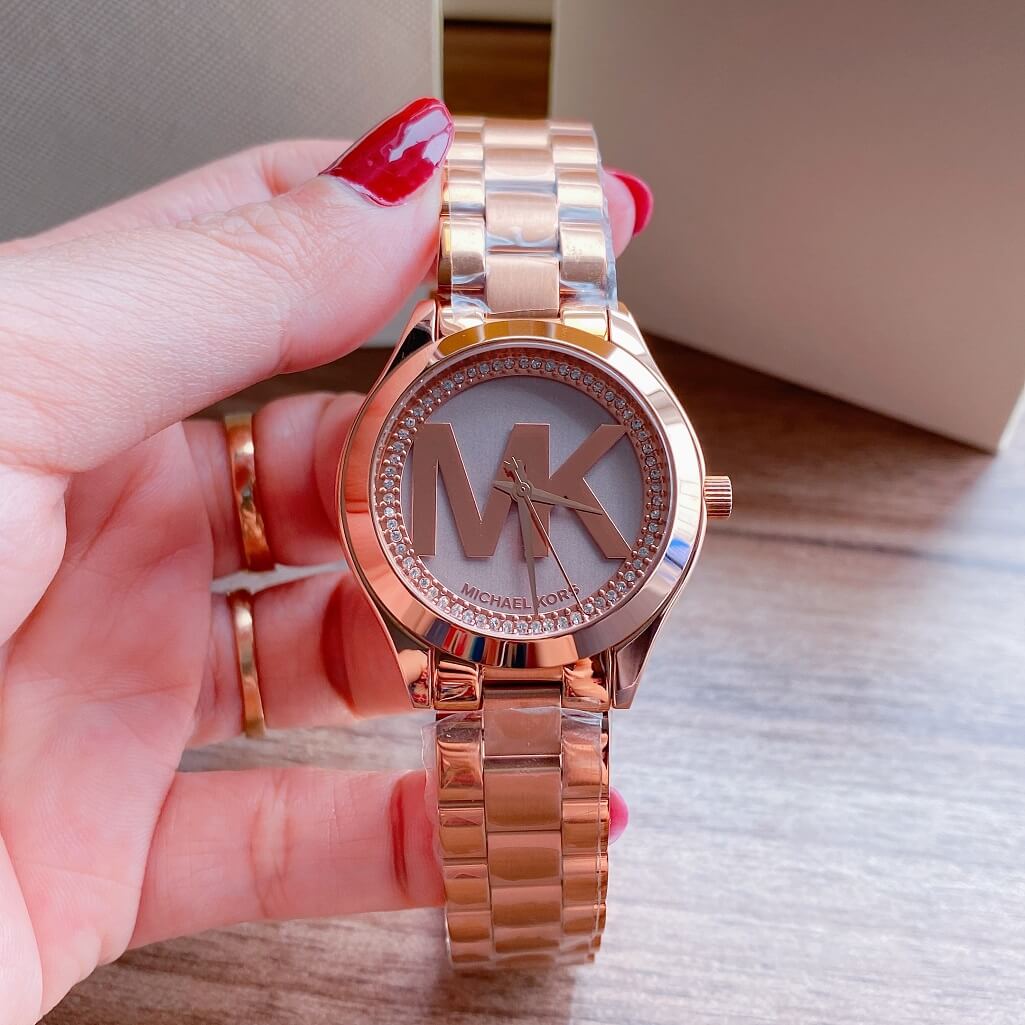 Logo "MK" không chỉ là một chi tiết thiết kế mà còn thể hiện đẳng cấp của thương hiệu Michael Kors, giúp người đeo dễ dàng nhận ra thương hiệu nổi tiếng này. Với màu sắc rose gold và thiết kế đơn giản nhưng tinh tế, mẫu đồng hồ này tạo ra sự kết hợp hoàn hảo giữa tính thẩm mỹ và sự sang trọng, làm tôn lên phong cách cá nhân của người sử dụng.