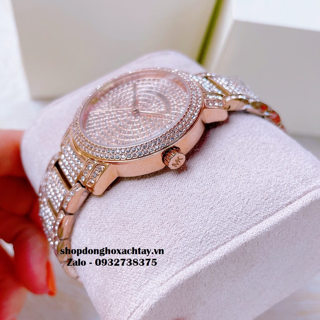 Mẫu MK đính đá đình đám nhà Michael Kors, mặt size 33mm lên tay vừa vặn, không to