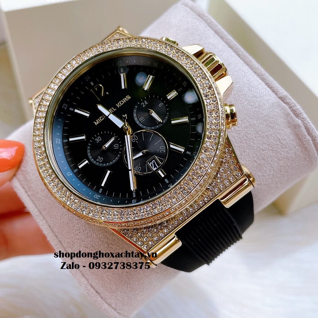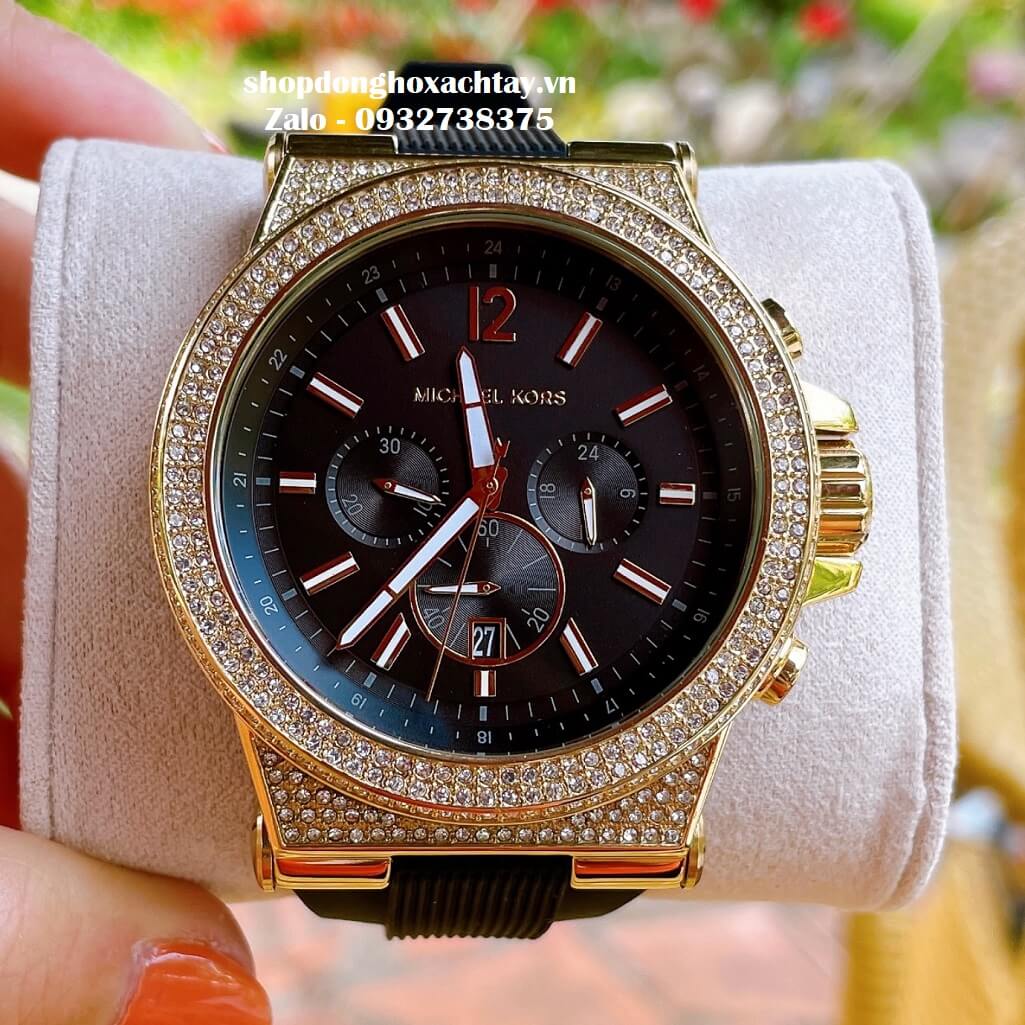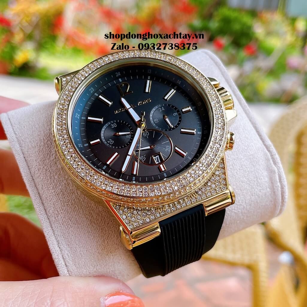 Đồng Hồ Michael Kors Nam MK8556 Dây Silicon Đính Đá Vàng 48mm Chính Hãng