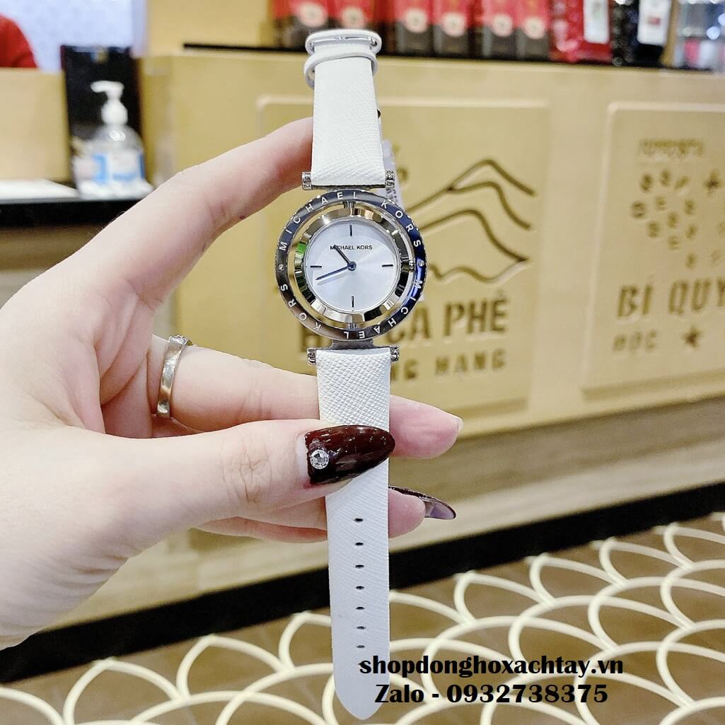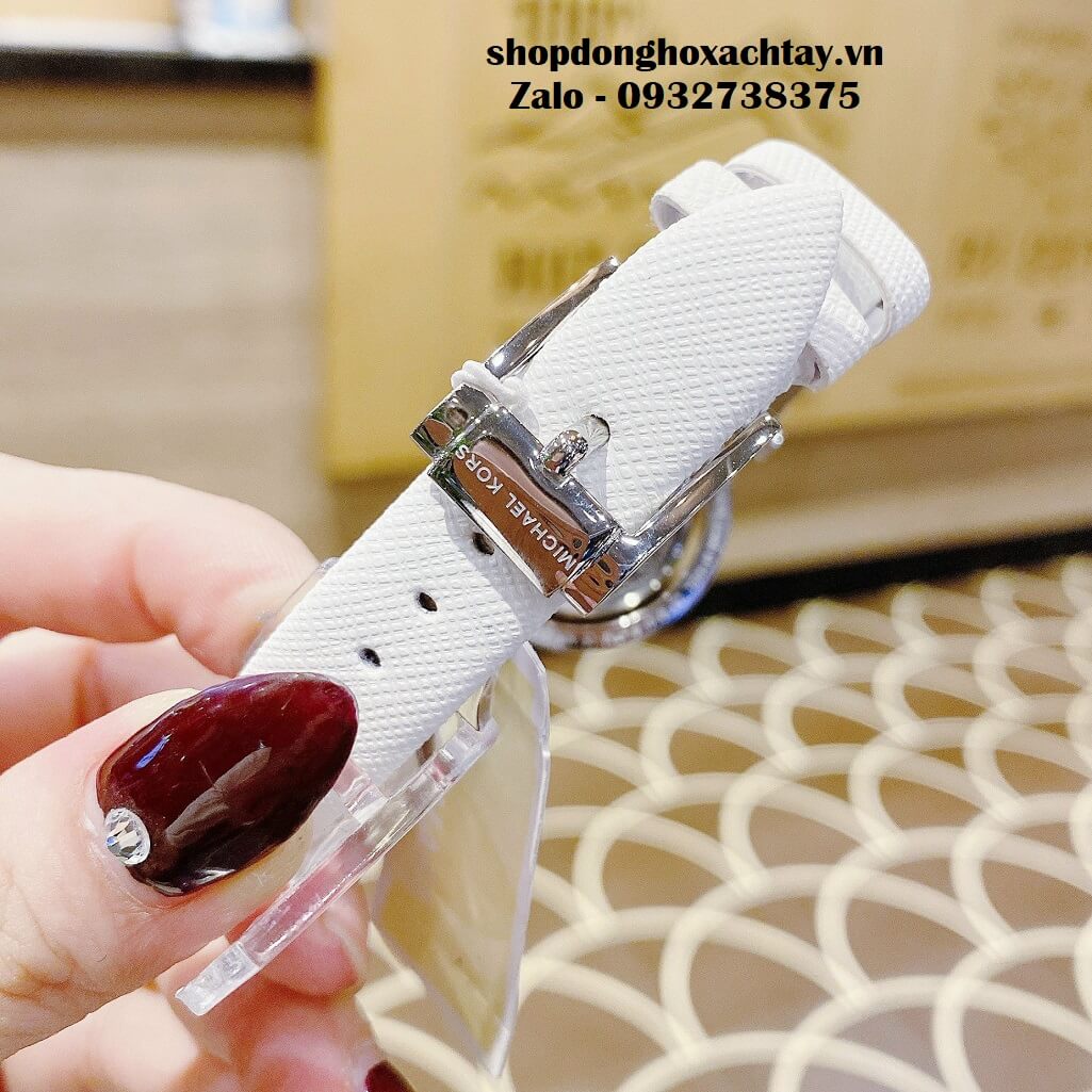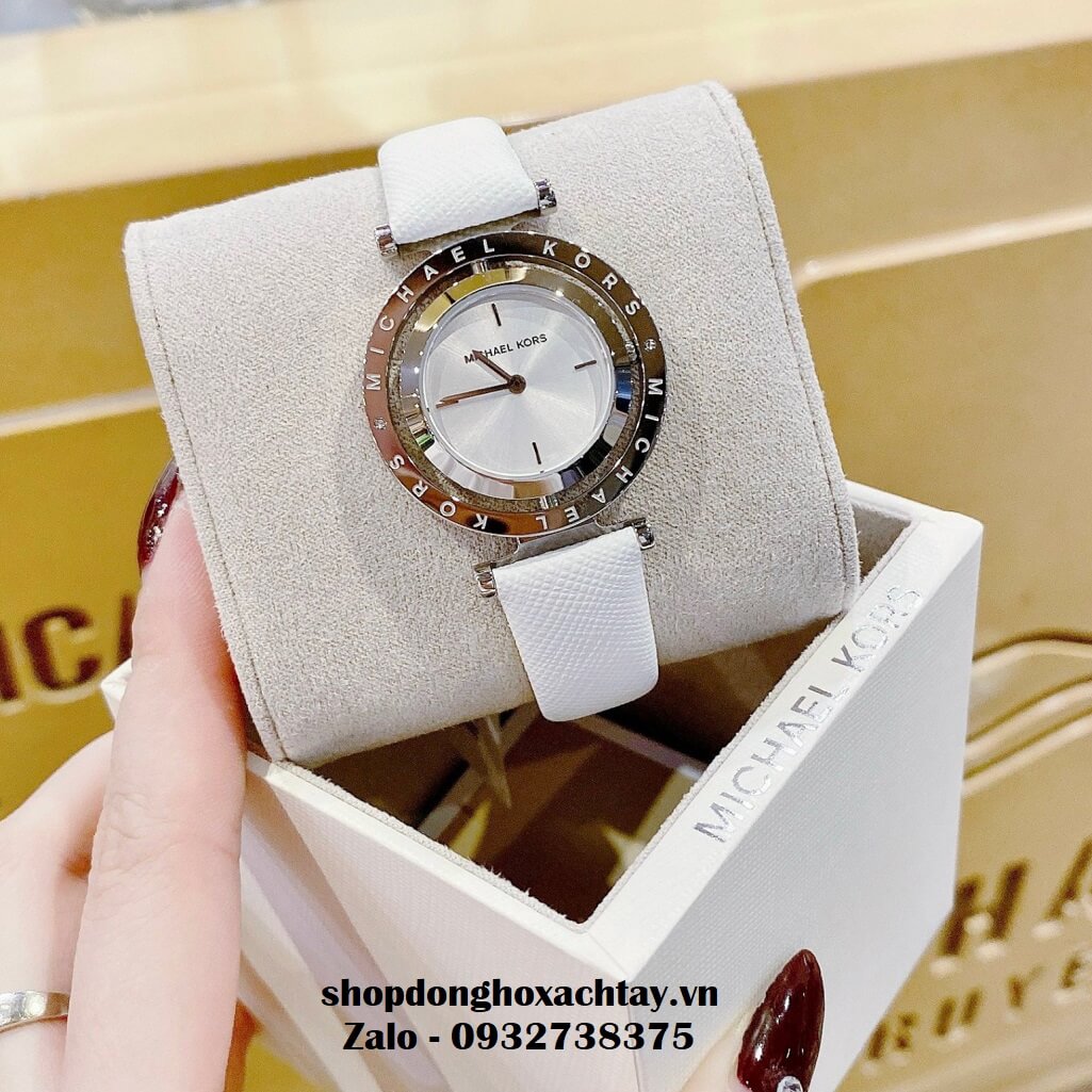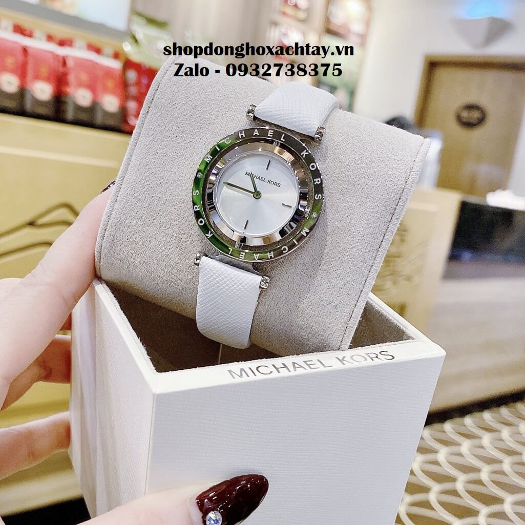 Đồng Hồ Michael Kors MK2524 Chính Hãng 33mm, màu trắng tinh khôi, đặc trưng với dây da gân saffiano hạn chế trầy và thấm nước.