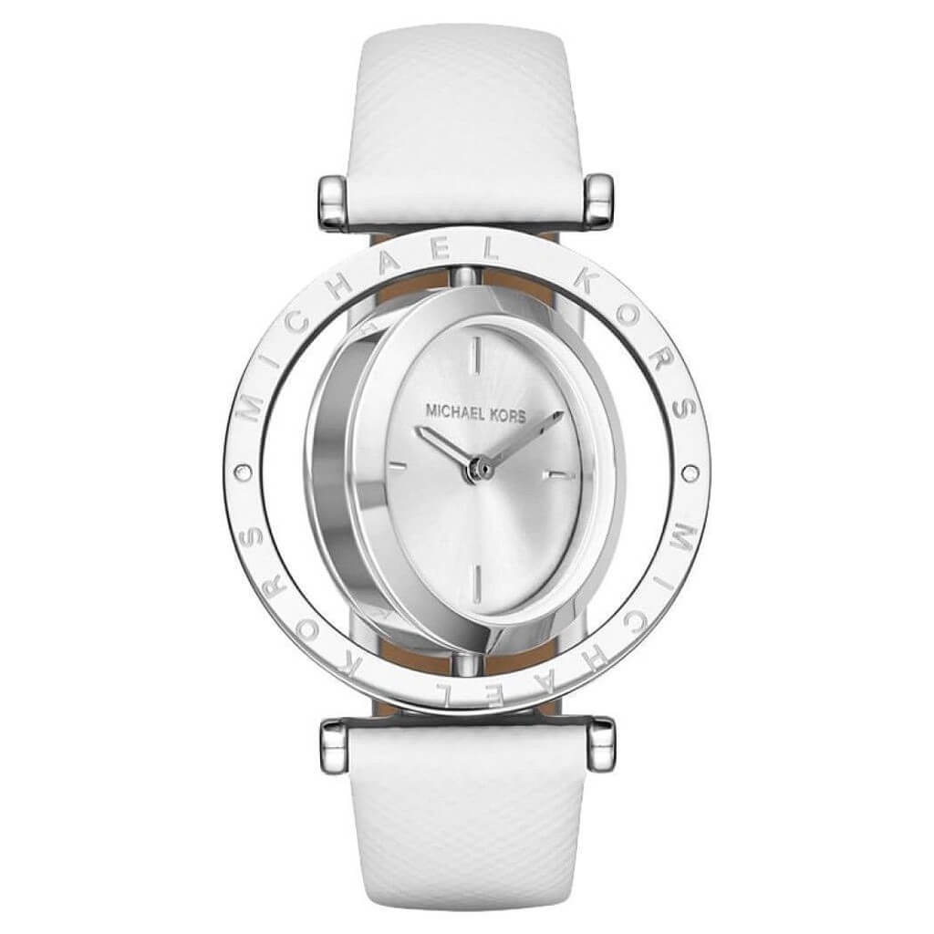 Michael Kors MK2524 Chính Hãng Nữ 33mm, màu trắng tinh khôi, đặc trưng với dây da gân saffiano hạn chế trầy và thấm nước.