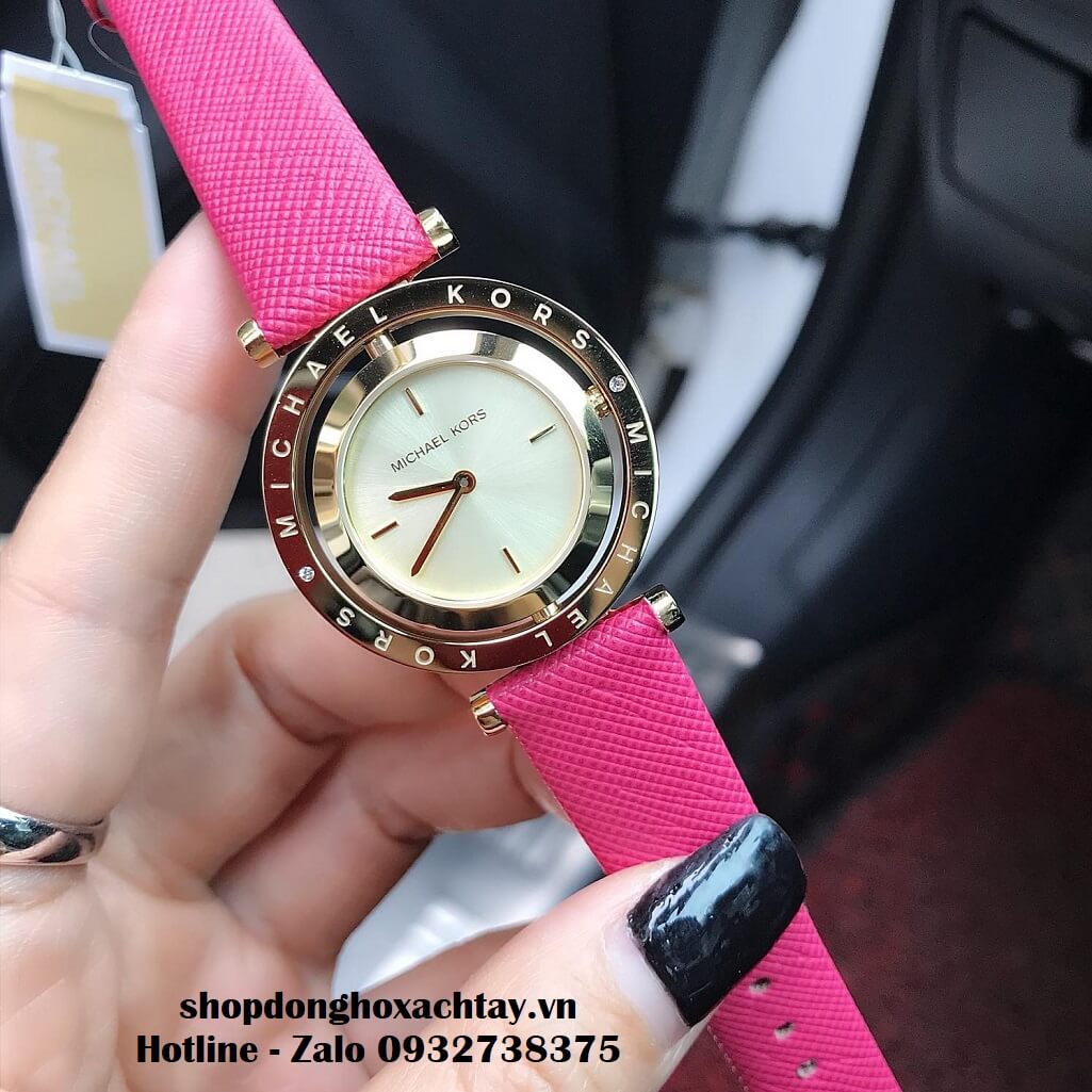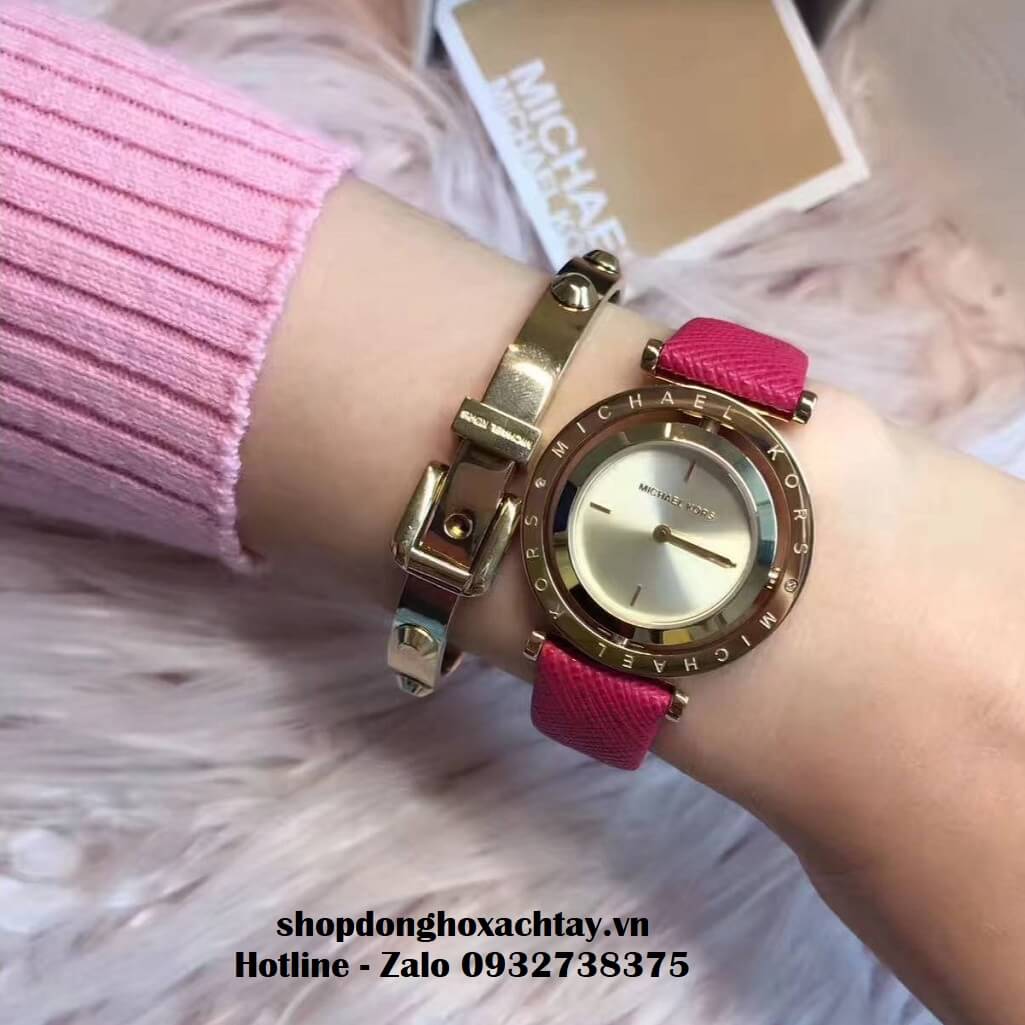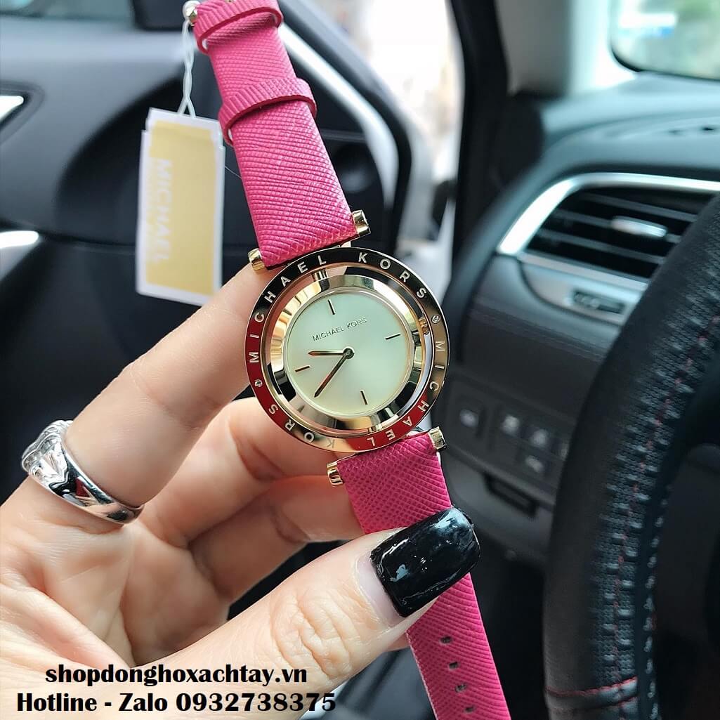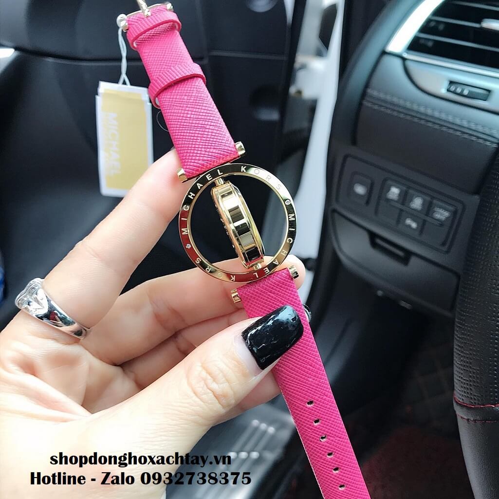 Đồng Hồ Michael Kors MK2525 Chính Hãng 33mm, màu hồng đậm, đặc trưng với dây da gân saffiano hạn chế trầy và thấm nước.
