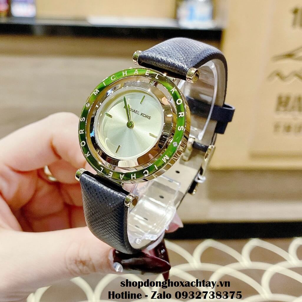 Đồng Hồ Michael Kors MK2524 Chính Hãng 33mm, màu xanh coban sang trọng, đặc trưng với dây da gân saffiano hạn chế trầy và thấm nước.