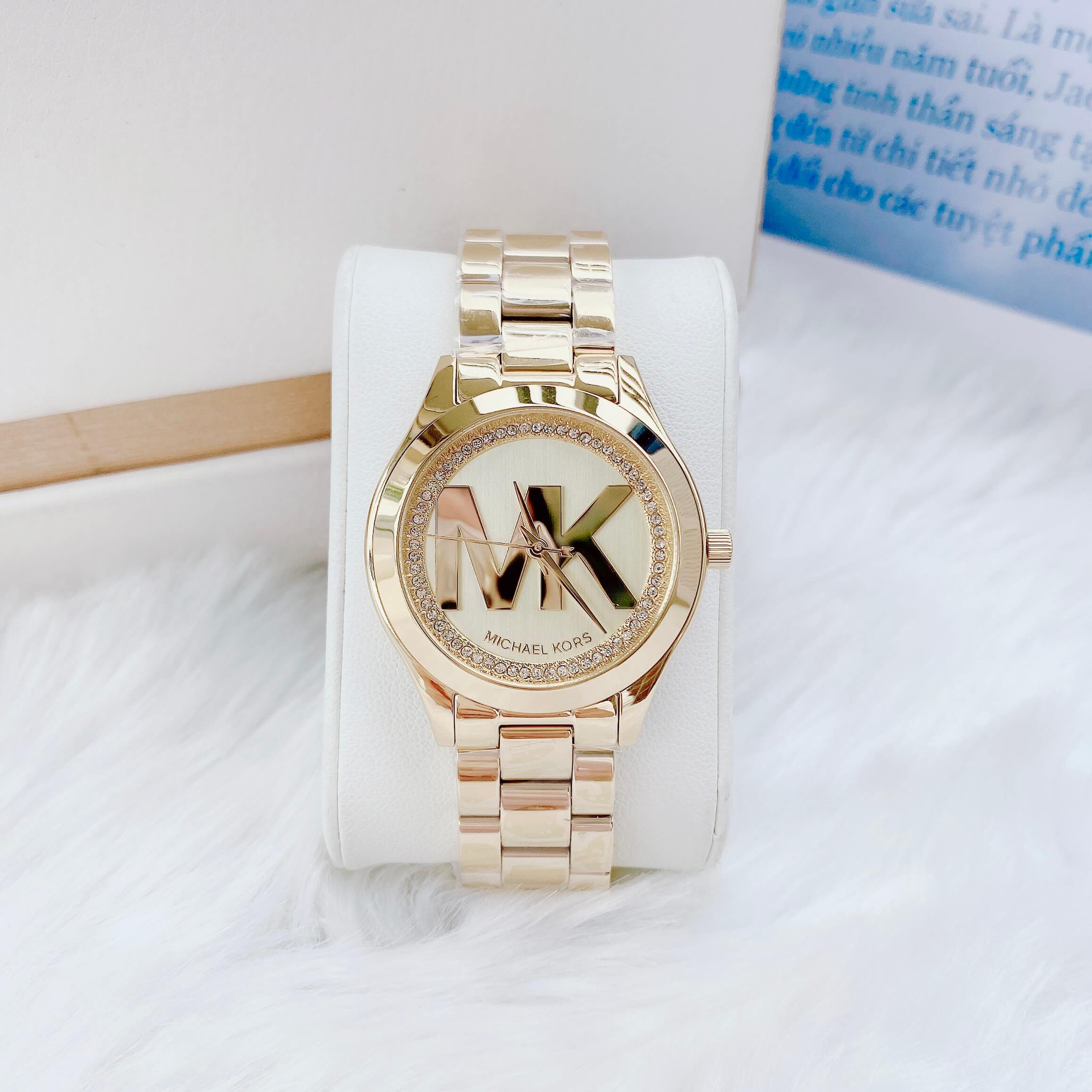Mặt đồng hồ in logo chữ MK cá tính, nhận diện thương hiệu rõ nét