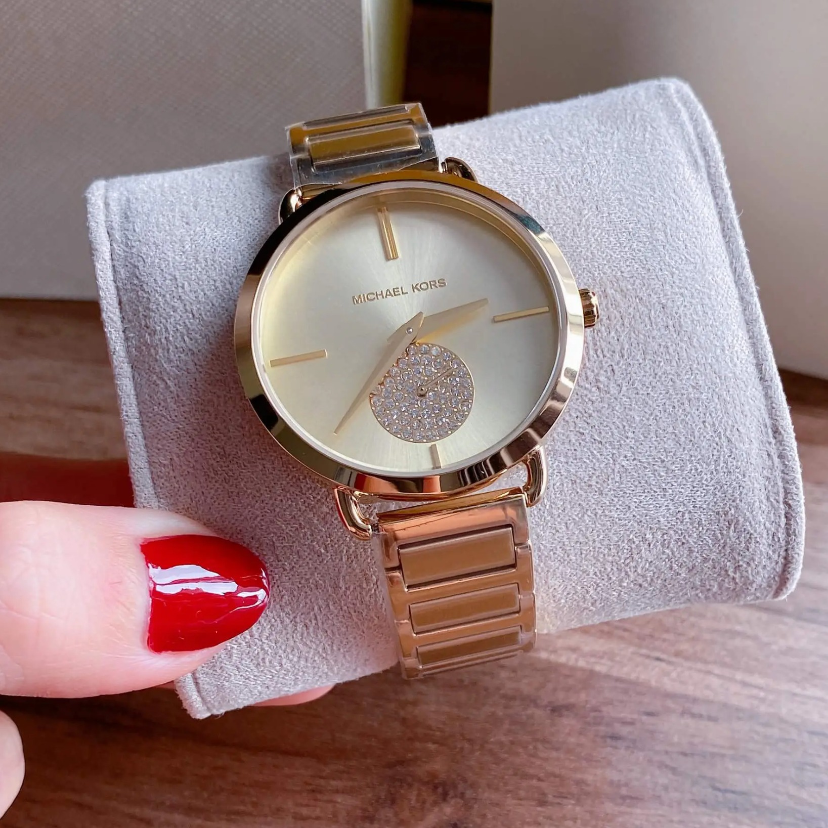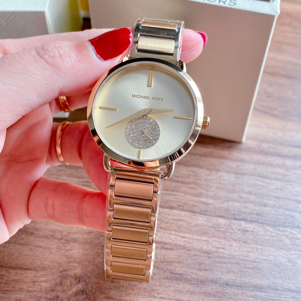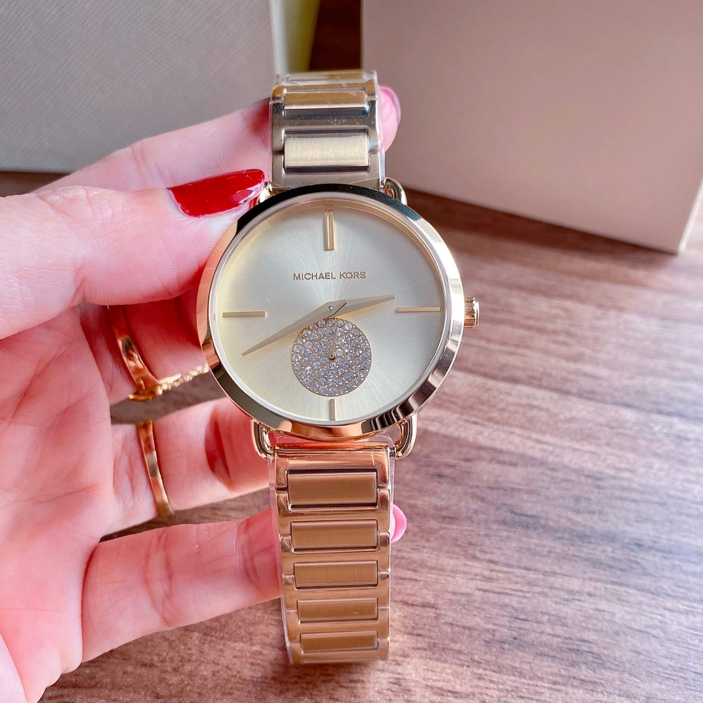Michael Kors MK3639 không chỉ là đồng hồ xem giờ mà còn là phụ kiện tôn phong cách. Thiết kế kim rốn khác biệt, mặt mỏng thanh thoát kết hợp cùng màu vàng gold thời thượng giúp mẫu này phù hợp đi làm, dạo phố hoặc làm quà tặng tinh tế cho phái đẹp.