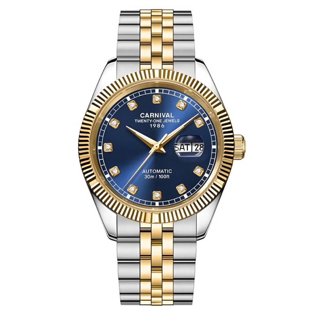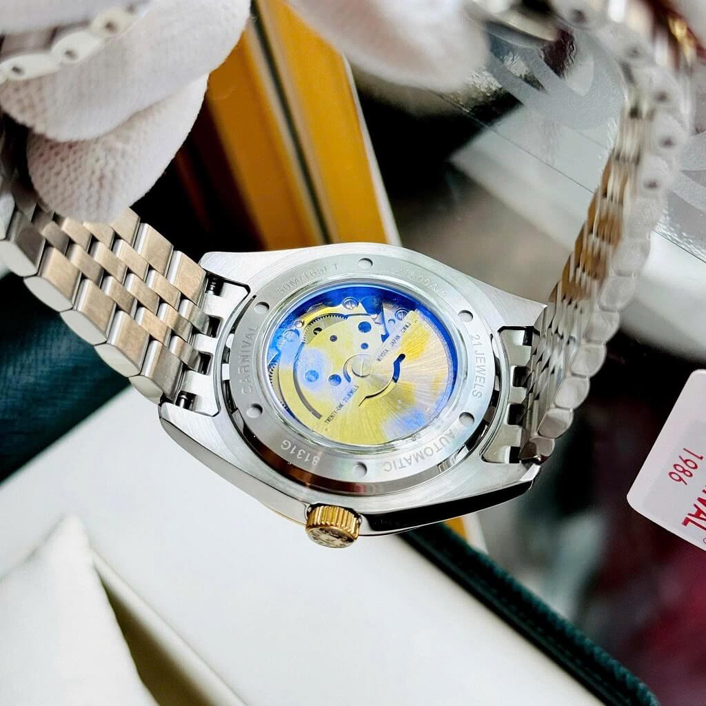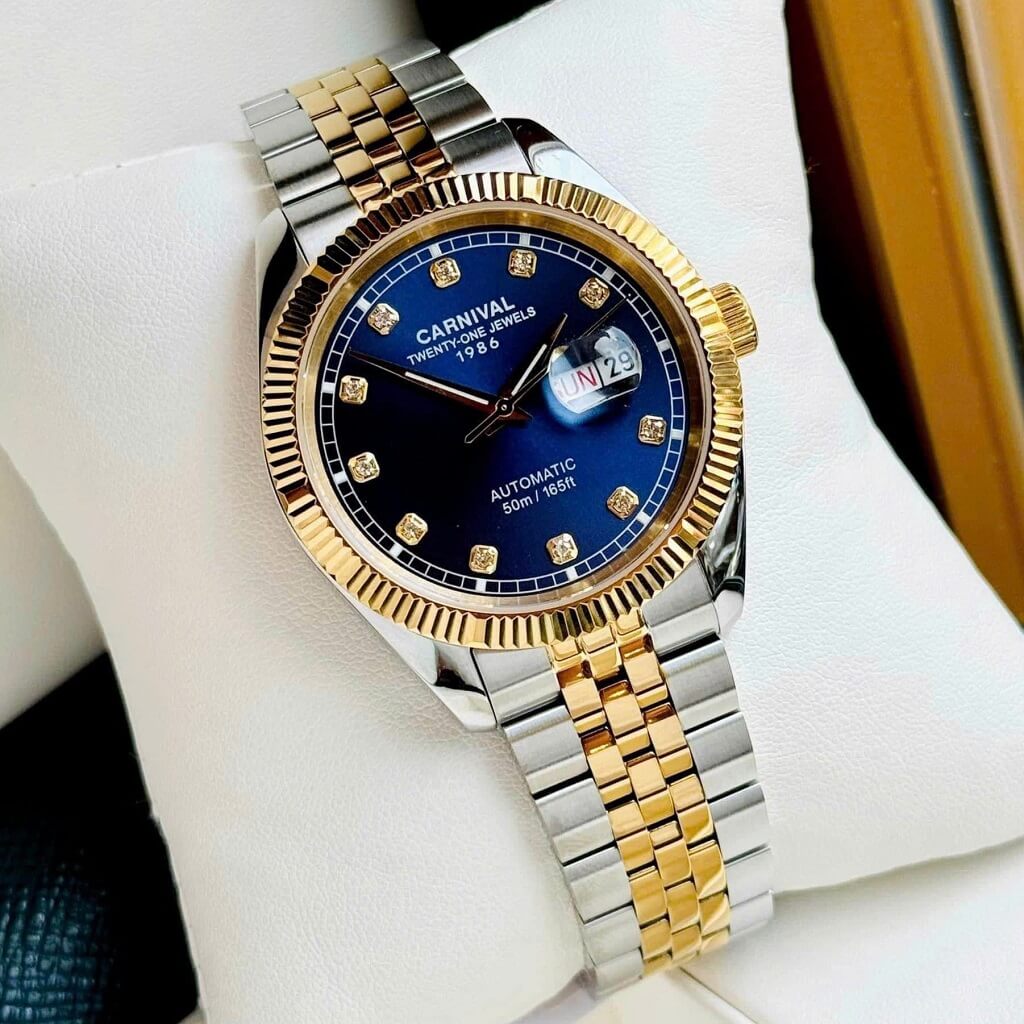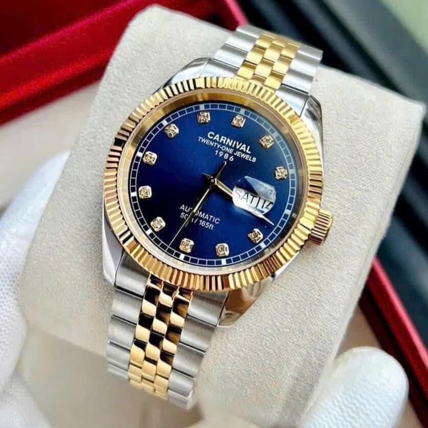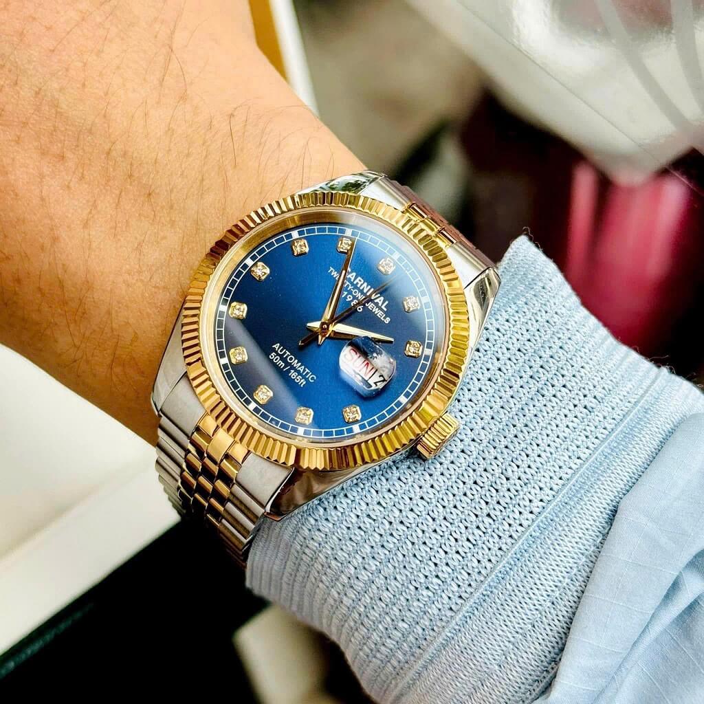Hình Ảnh Đồng Hồ Nam Carnival 8131G Dây Thép Vỏ Demi Gold Blue 41mm Chính Hãng